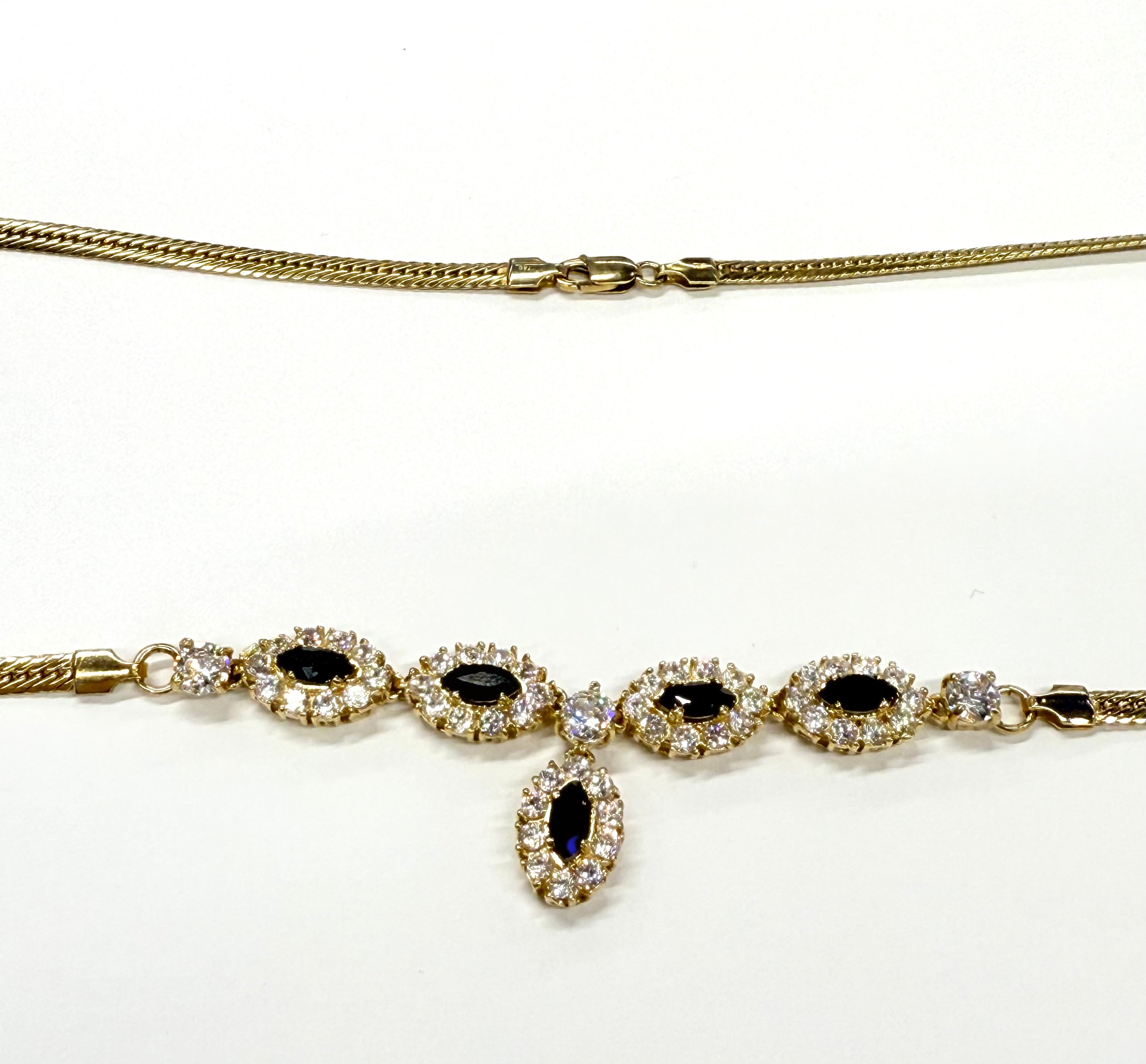Parure 18K Collier, Bracelet et Boucles d'oreille Saphirs et Zirconiums