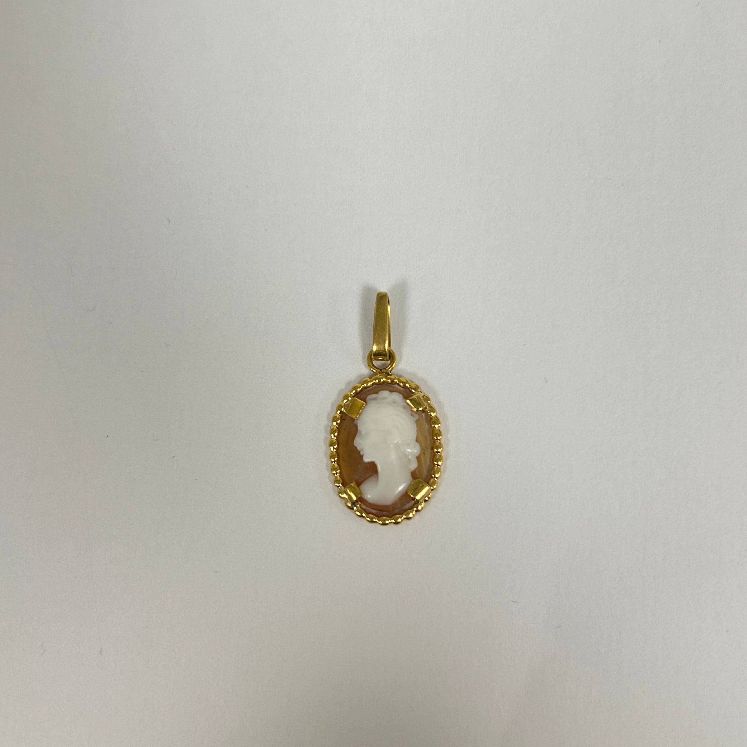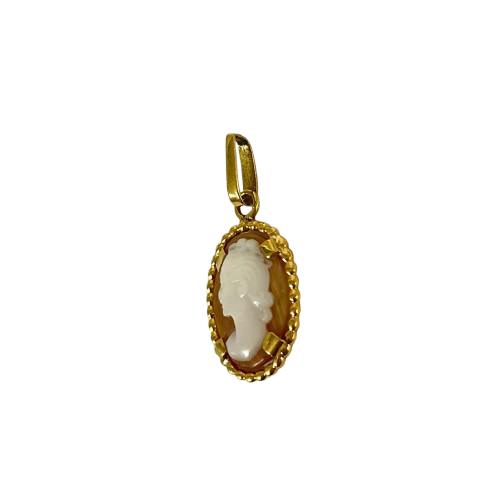 Pendentif médaille en or jaune 18 carats (750/1000), sans poinçon, d’un poids de 1,62 gramme. Il mesure 3 cm de hauteur, 1,5 cm de largeur et 0,2 cm d’épaisseur. Sans pierres, il est en bon état général.