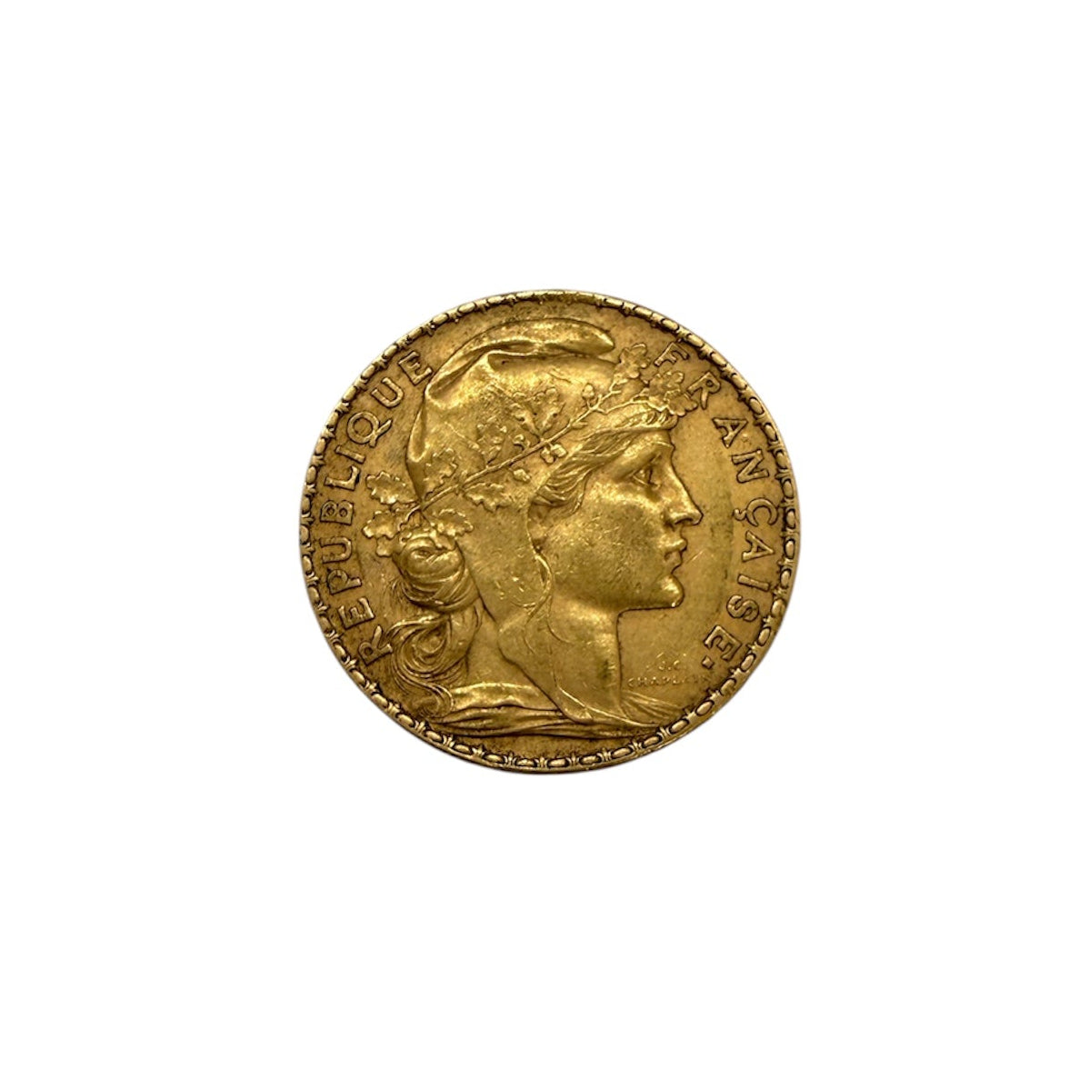 Pièce en or 20 Francs Coq Marianne – année 1904, en or jaune 900/1000 (20 carats). Poids 6,44 g, diamètre 20 mm, épaisseur 1 mm, en très bon état, une valeur sûre alliant patrimoine et investissement.