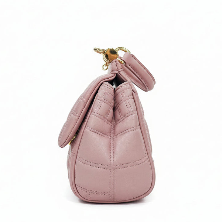 Élégant sac à main clutch Dolce & Gabbana modèle Sicily, en finition rose au design iconique. Doté d’une bandoulière pour un porté polyvalent. Dimensions : 22 × 16 × 12 cm, offrant un format pratique et raffiné. En très bon état, ce sac de luxe est idéal pour sublimer vos tenues avec une touche féminine et intemporelle.