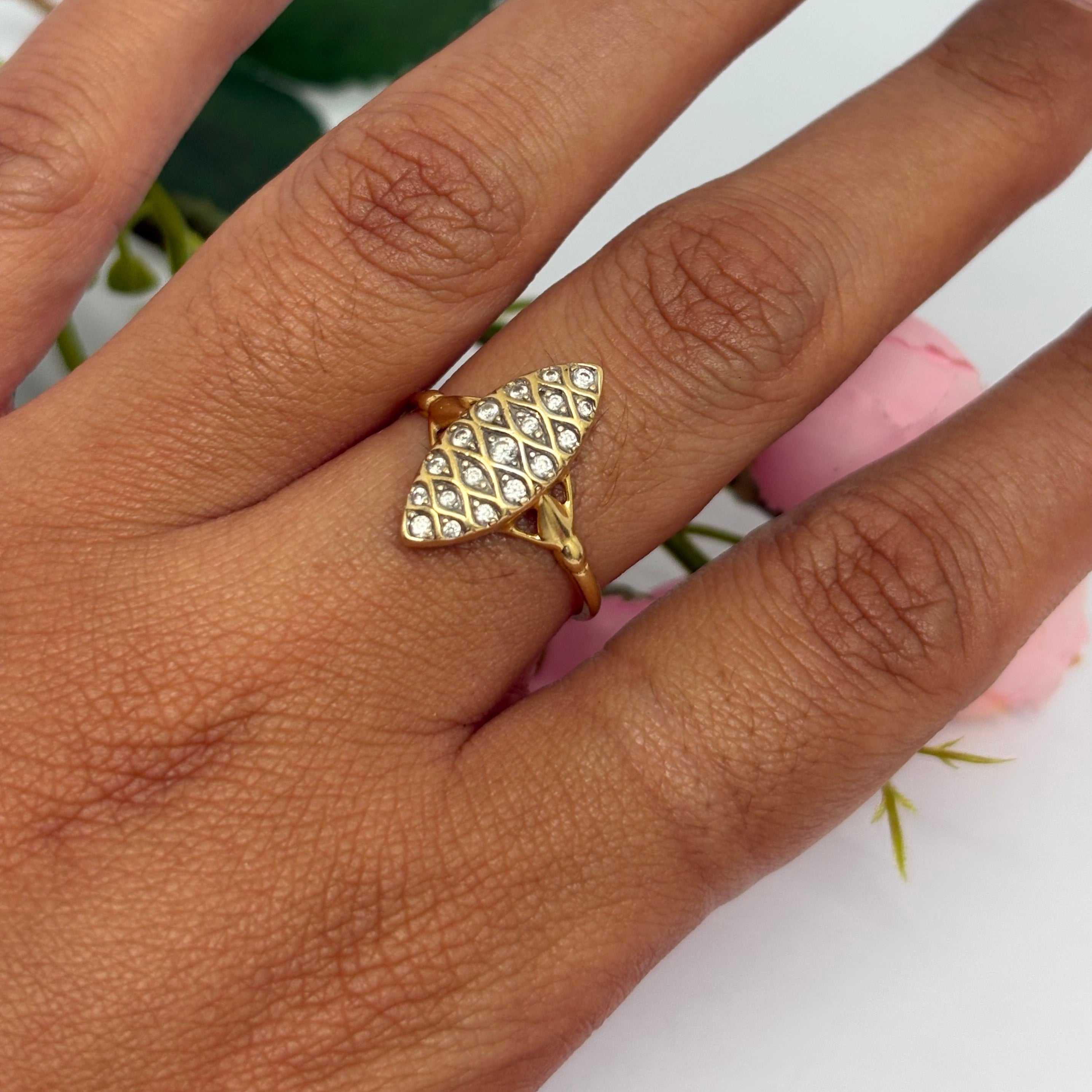 Bague Marquise en Or Jaune 18K - Taille 56 - 2.87g