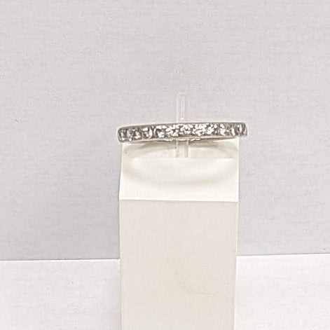 Bague tour complet en platine 950, poinçonnée Chien/Loup, sertie de 30 diamants totalisant 0,60 ct pour un éclat uniforme et raffiné. Taille 54, poids 3,58 g. Bijou en très bon état, élégant et intemporel, parfait pour un usage quotidien ou une occasion spéciale.