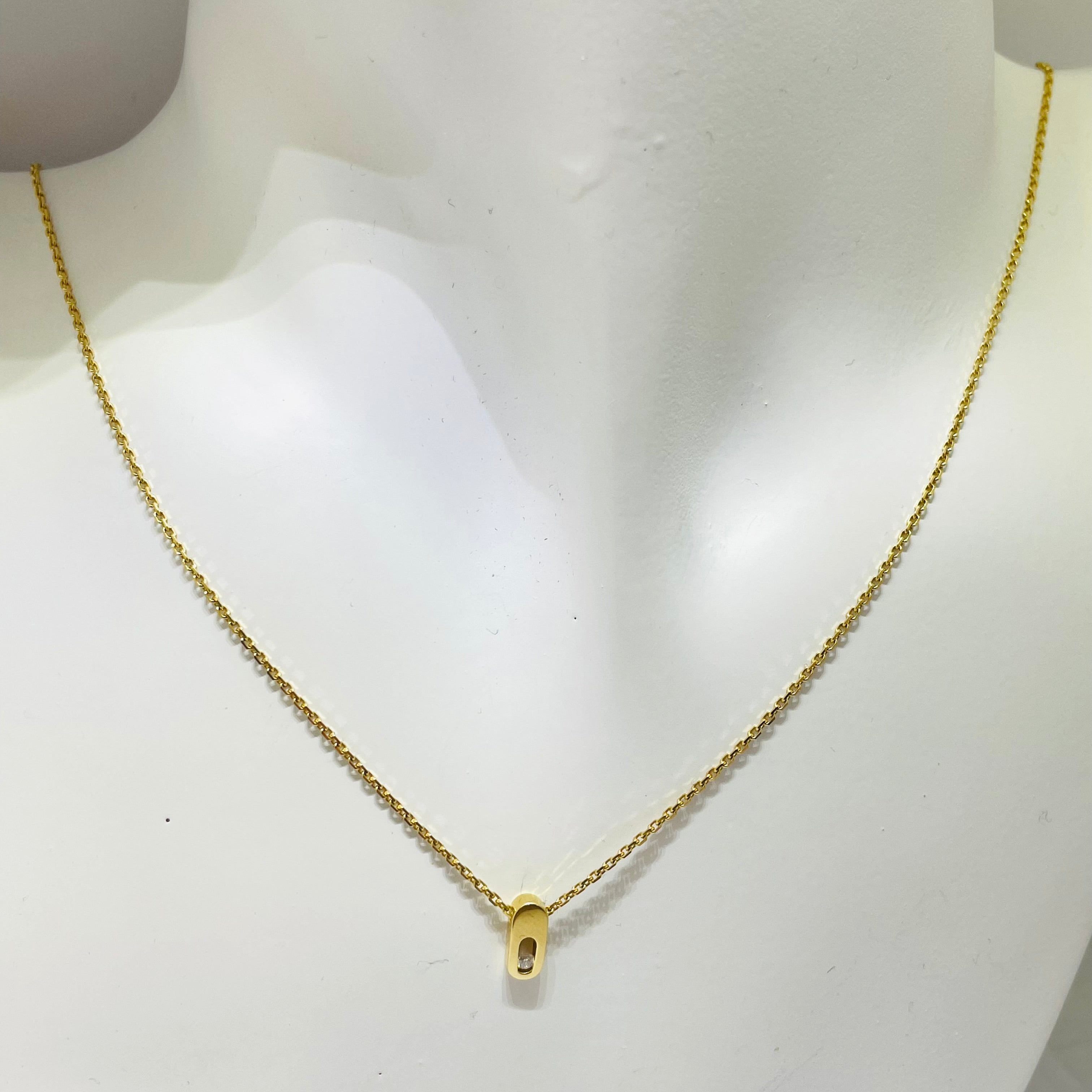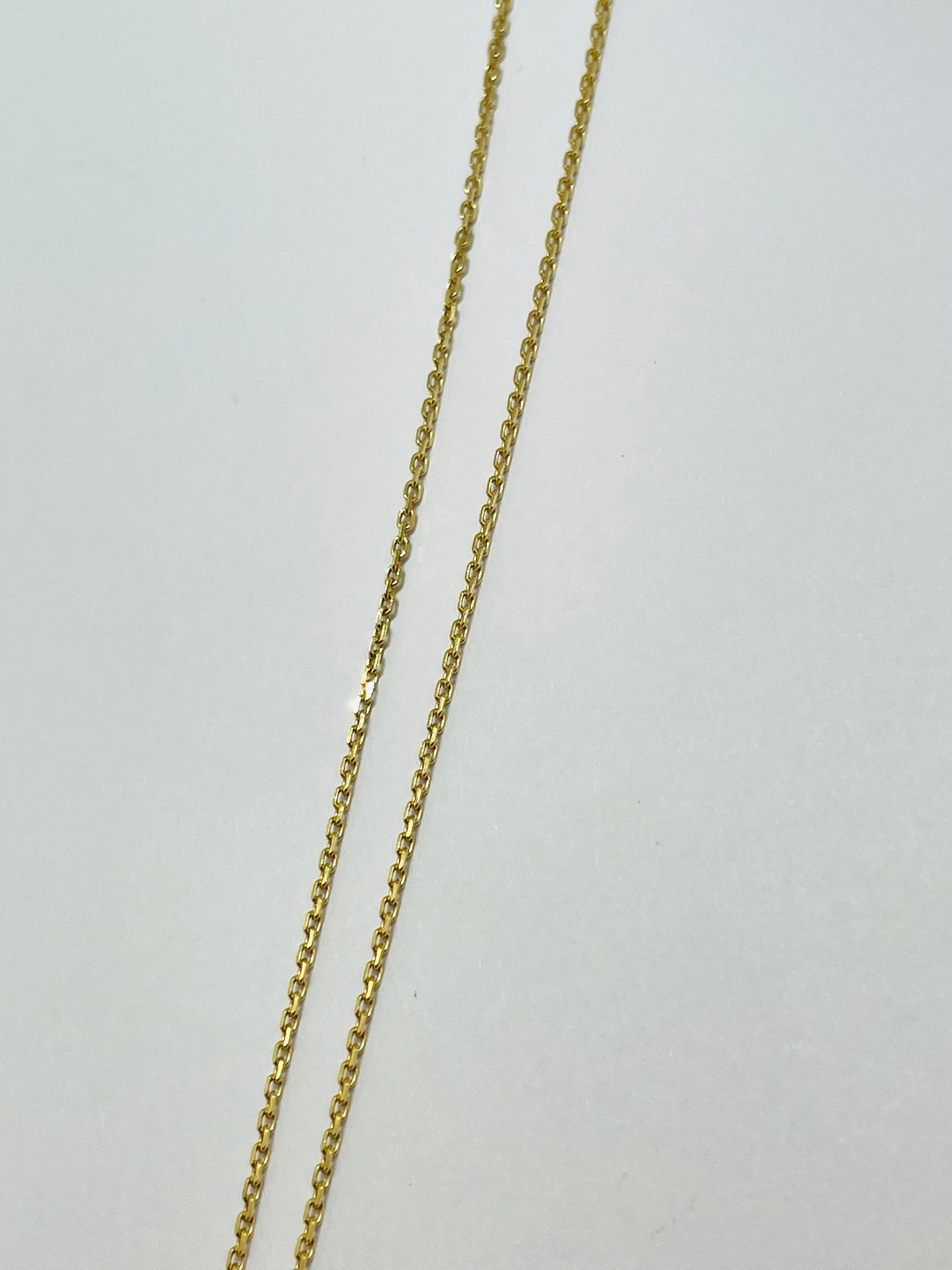 Collier Princesse en or jaune 18 carats (750/1000), réalisé en maille forçat élégante et raffinée. Il mesure 41,5 cm de longueur, avec une largeur de 10,5 mm et une épaisseur de 1 mm, offrant un porté délicat et confortable. Sertie d’un diamant unique, cette pièce apporte une touche de brillance subtile. Équipé d’un fermoir mousqueton et poinçonné 750, le collier est en état comme neuf, parfait pour un bijou élégant et intemporel.