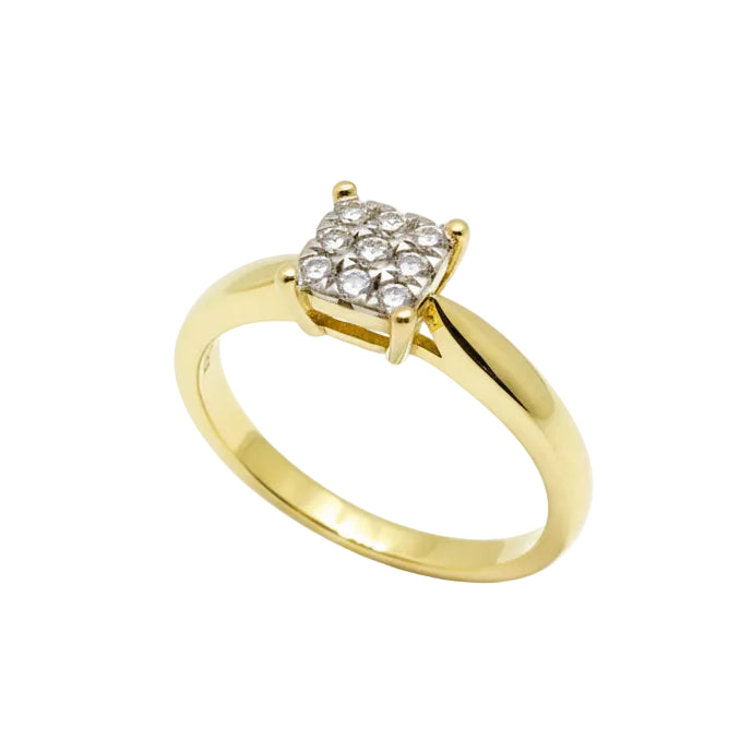 Bague solitaire en or jaune 18 carats (750/1000), sertie de 9 oxydes de zirconium pour un bel éclat.