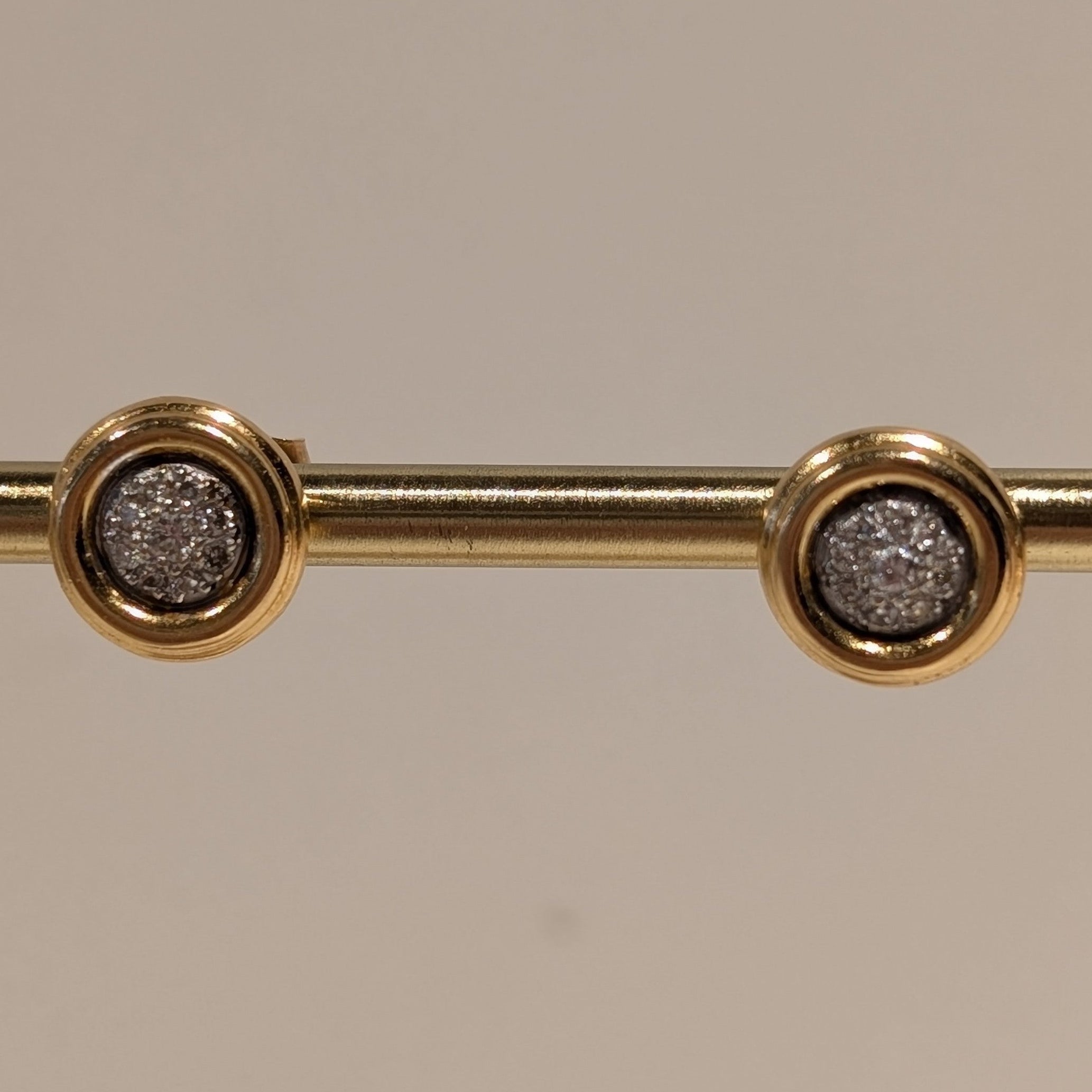 Boucles clou en or jaune 750/1000 (18 carats), fermoir poussettes, au poids de 3,82 g et dimensions 1 x 1 cm. Chaque boucle est sertie d’un diamant central et 8 éclats de diamant, offrant un éclat raffiné. En bon état, elles allient élégance et brillance.