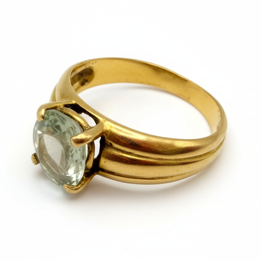 Solitaire en or jaune 18 carats (tête d’aigle 750/1000), serti d’un oxyde de zirconium. Poids 3,7 g, taille 54, bon état. Un bijou élégant et lumineux, idéal pour un look raffiné au quotidien.