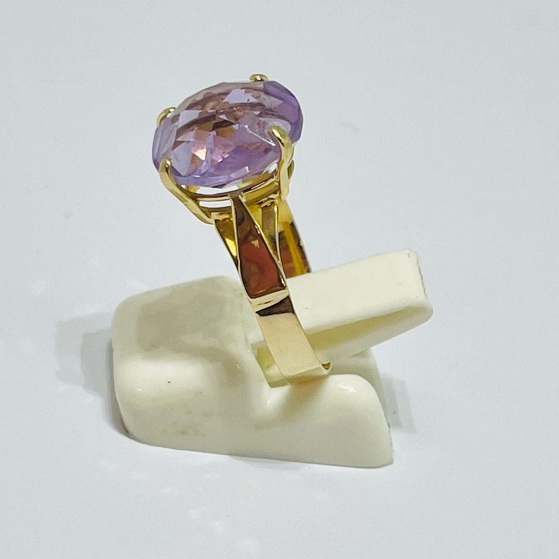 Bague empierrée en or jaune 18 carats (750/1000), poinçonnée Tête d’Aigle, sertie d’une améthyste. Poids : 2,97 g, taille 56, en très bon état. Bijou élégant et authentique, idéal à porter ou à offrir.