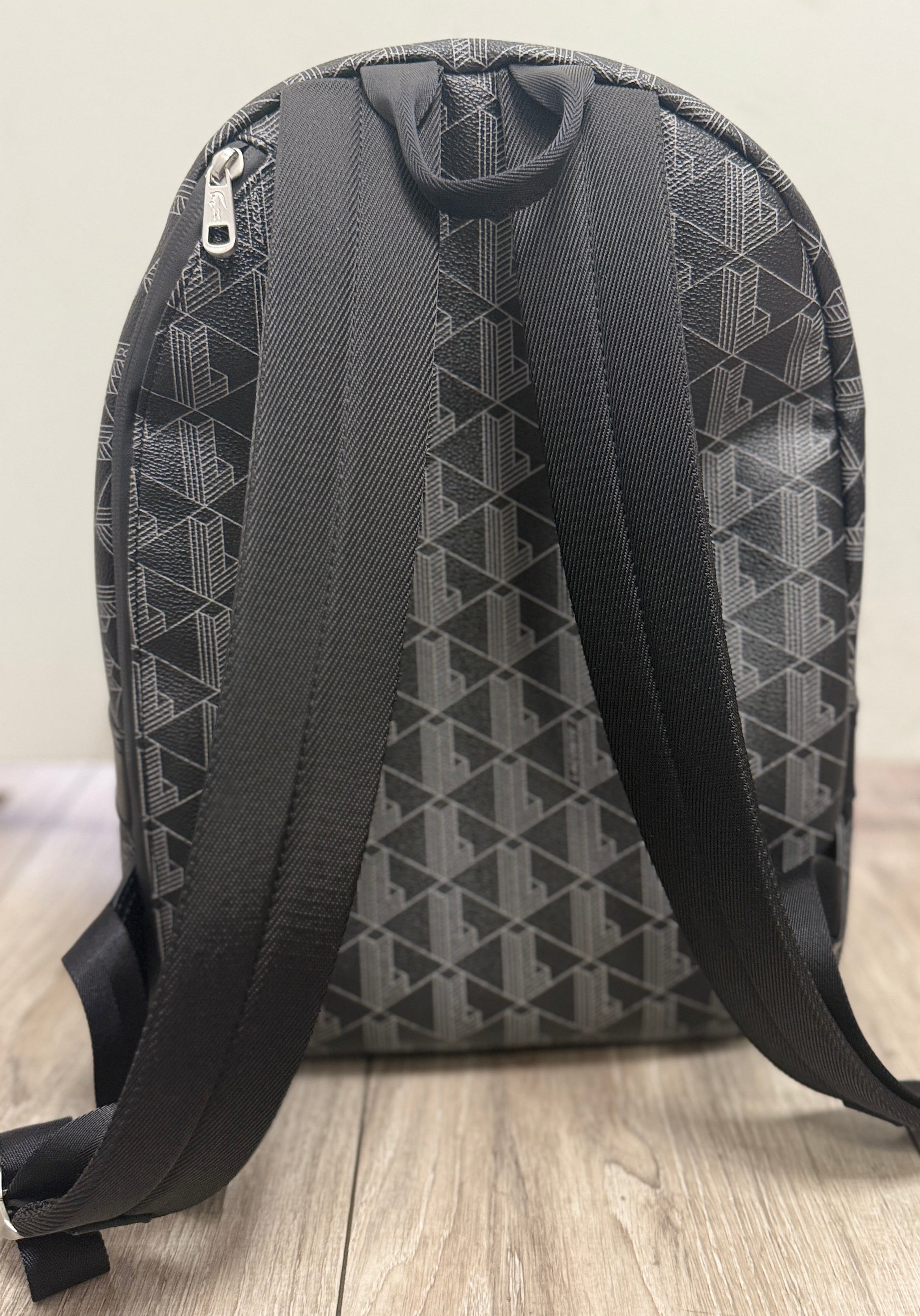 Sac à dos Lacoste modèle The Blend arbore un design élégant en finition monogram noir et gris, confectionné en PVC résistant. De forme classique, il se distingue par un marquage Lacoste embossé et un crocodile ton sur ton, subtil et sophistiqué. Mesurant 40 cm de hauteur, 30 cm de largeur et 13,5 cm de profondeur, il est en excellent état, comme neuf.