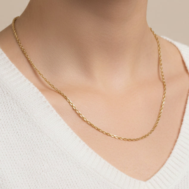Ce collier princesse en or jaune 18 carats (750/1000) est réalisé en maille forçat fine, appréciée pour sa sobriété et sa résistance. Sa longueur de 45 cm offre un porté élégant et équilibré, parfait seul ou avec un pendentif. Le fermoir anneau ressort assure une fermeture fiable au quotidien.