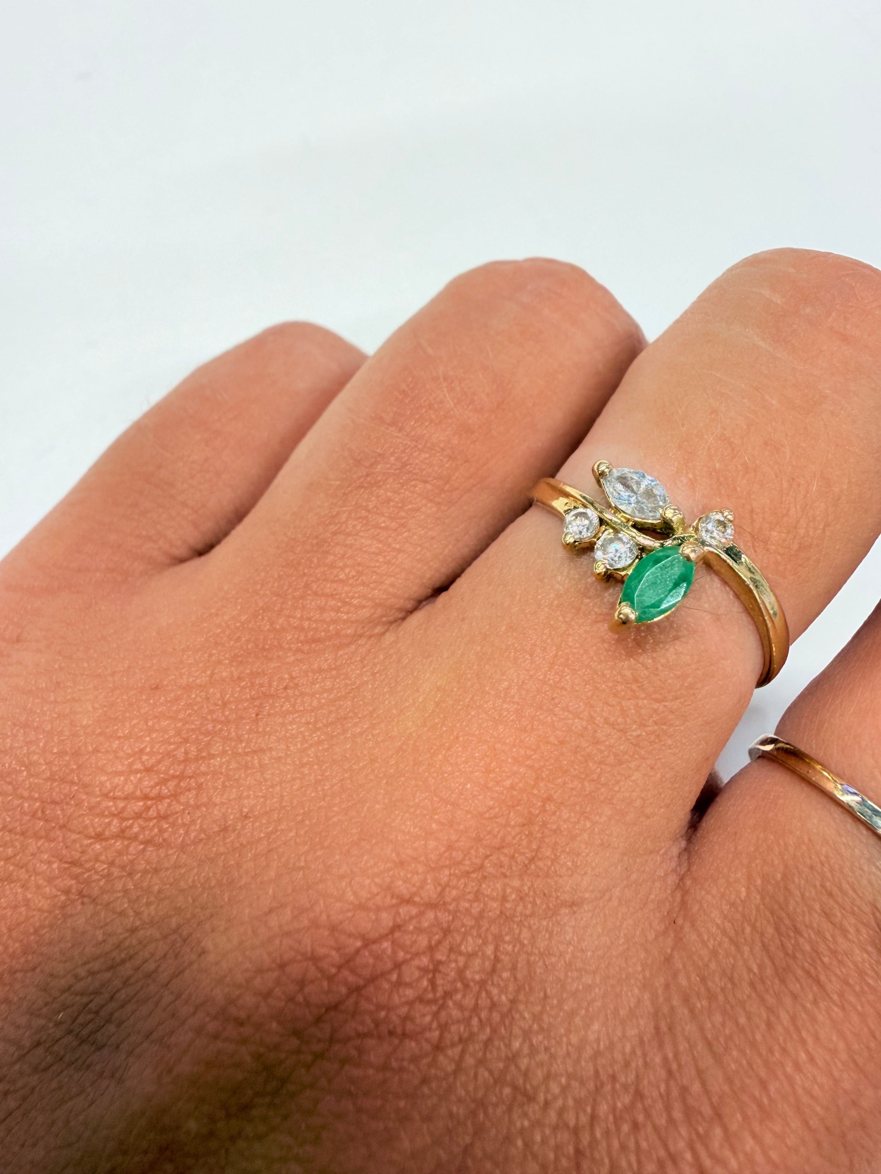 • Nombre de pierres : 1 émeraude de 0.3cm et 4 zirconiums