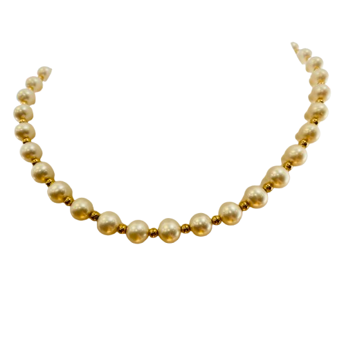 Collier Ras du Cou en Or Jaune 18 Carats avec Perles et Boules