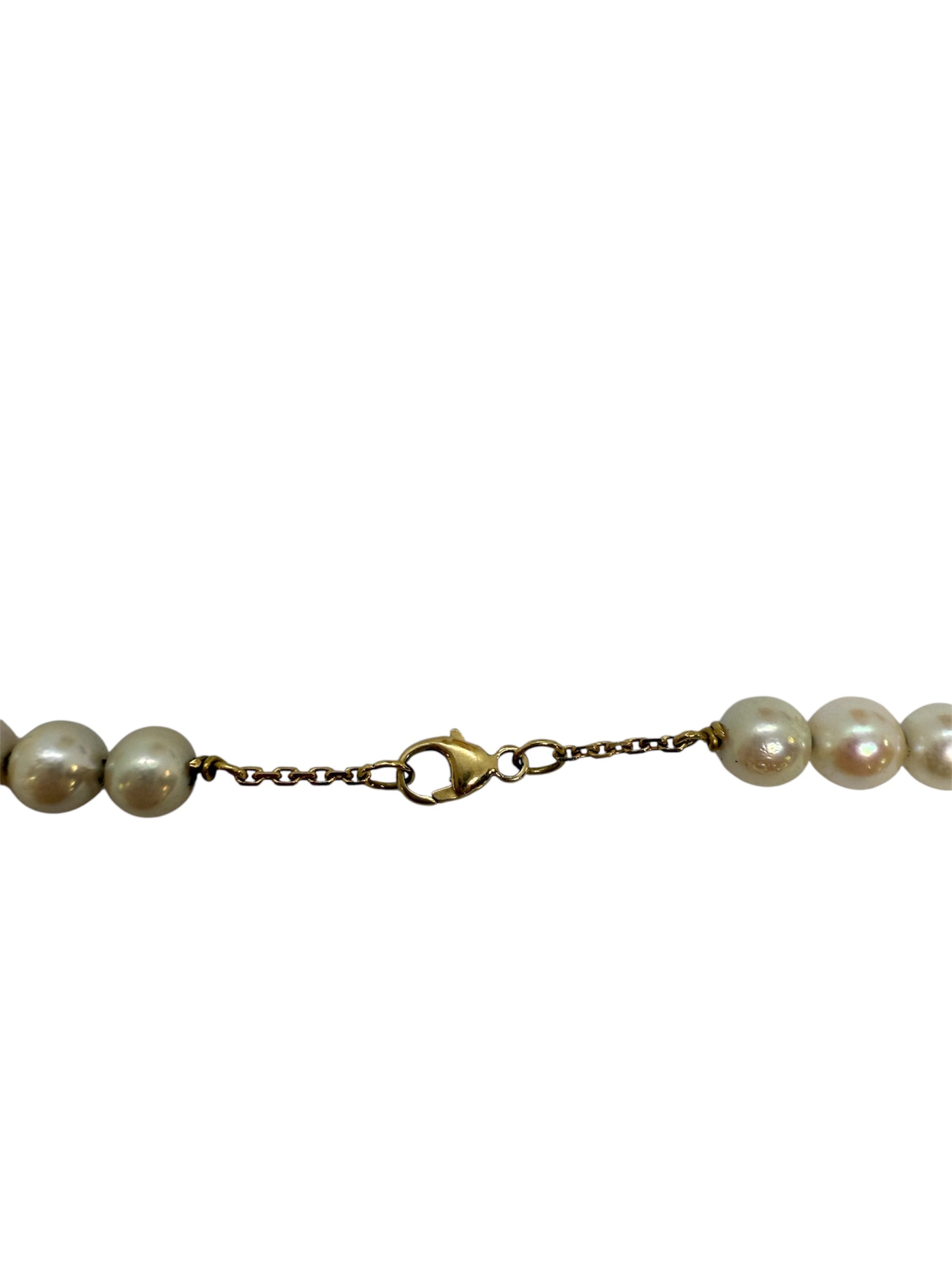 Collier ras du cou en or jaune 750/1000 (18 carats), composé d’une maille forçat et orné de perles. Il mesure 19 cm de long, avec une largeur et une épaisseur de 4 mm. Son fermoir mousqueton assure une fermeture sécurisée. Ce bijou, sans poinçon, affiche un poids de 5,30 grammes et se présente en très bon état.
