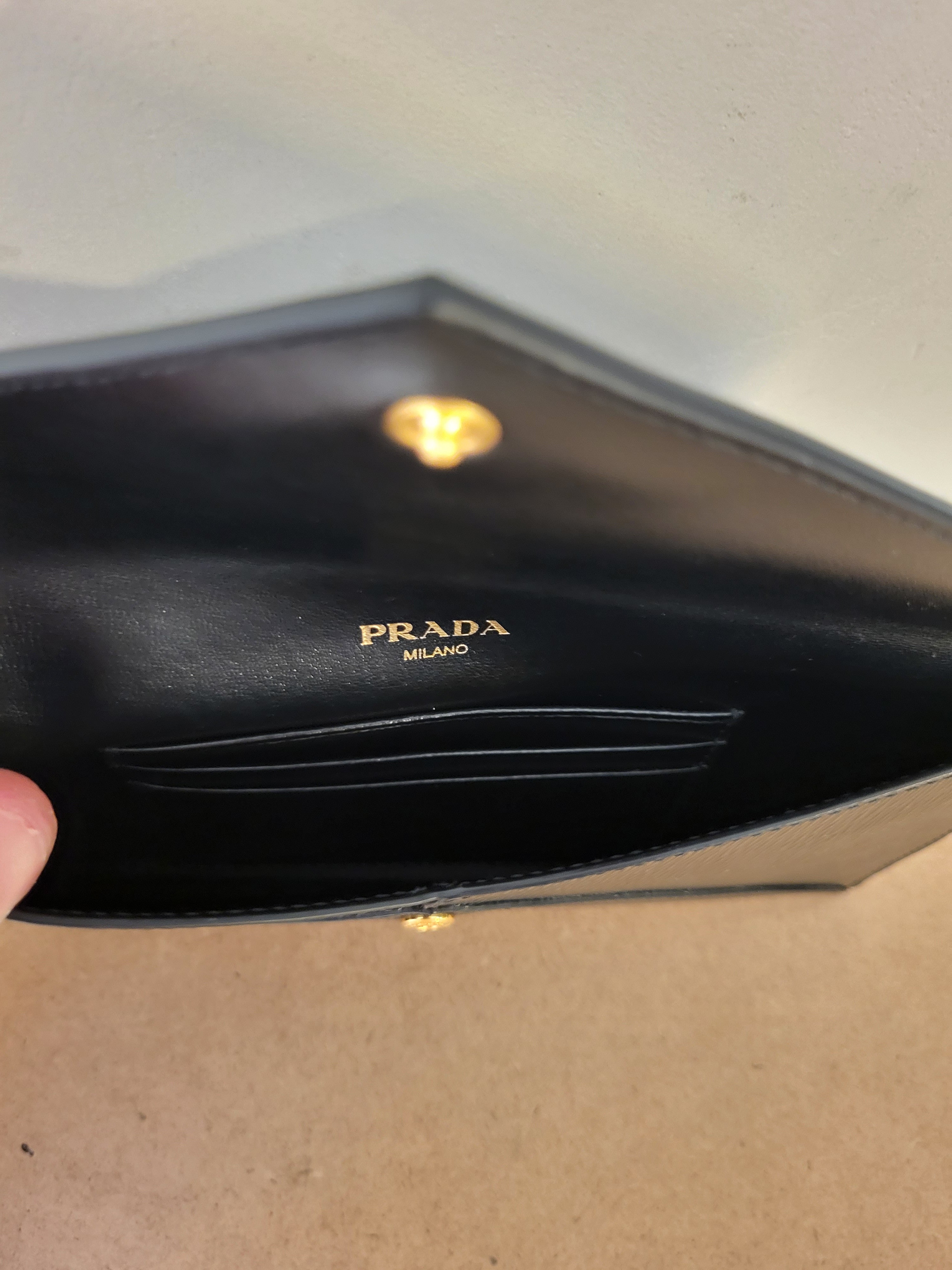 Fournis avec : Dust Bag (Non)Boite (Oui)Certificat (Oui)Facture (Non) Très belle pochette de marque Prada sous la référence . Vendu avec son certificat d'authenticité et sa boîte d'origine.