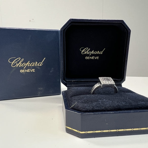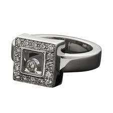Belle bague bague Chopard Happy Diamond or blanc 750/1000 ornée d'un diamant mobile 0.48ct et 16 diamants 0.02ct