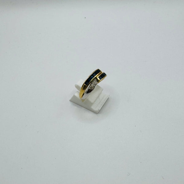 Bague Demi Tour en Or Jaune et Blanc 18 K avec Diamants - T 59