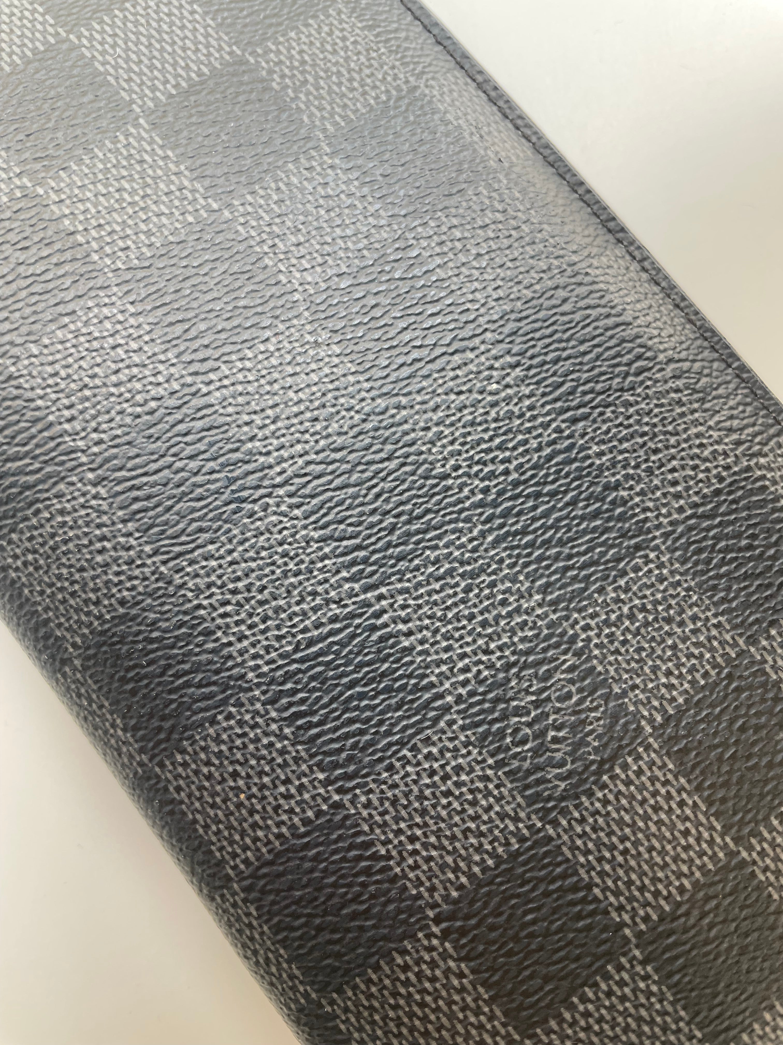 Portefeuille Louis Vuitton modèle Brazza en toile Damier Graphite, format 19 x 10 x 2 cm. Design élégant avec de nombreux rangements pratiques pour cartes, billets et papiers. Un accessoire iconique, fonctionnel et raffiné, idéal au quotidien. En bon état.