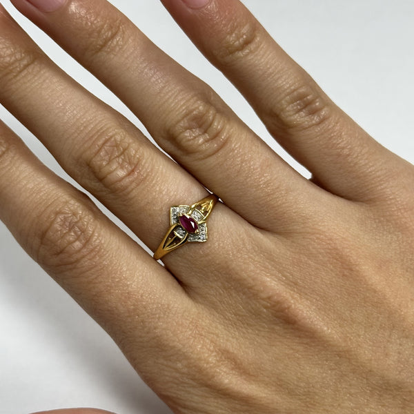 Pierres : 1 pierre naturelle rouge + 4 diamants de 0.01 carats