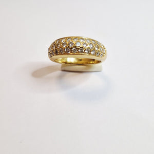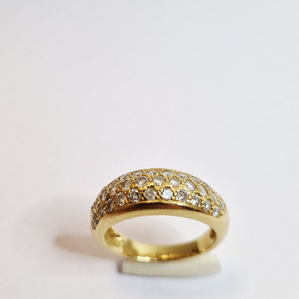 Bague demi-tour en or jaune 750/1000, sertie de 39 diamants ronds de 1 mm, répartis harmonieusement sur la moitié de l’anneau. Ce modèle combine élégance discrète et brillance subtile, idéal pour un usage quotidien ou une occasion particulière.