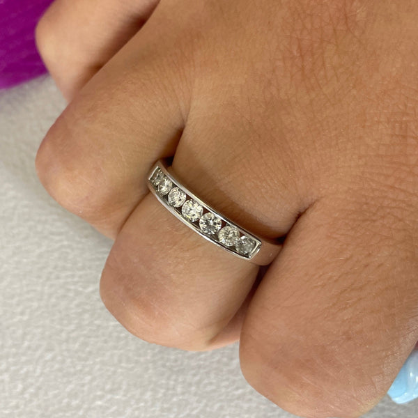 Bague demi-tour en or blanc 18K (750/1000) de 4,47 g, taille 54, ornée de 7 diamants de 0,08 carat chacun. Élégante et raffinée, elle est en bon état et idéale pour sublimer votre style.