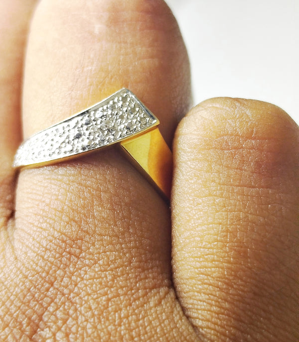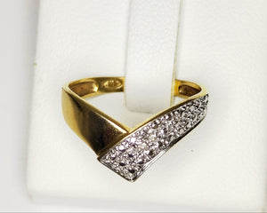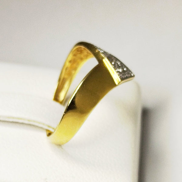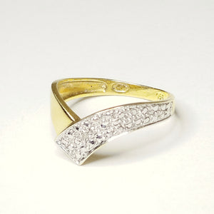 Bague empierrée est conçue en or jaune 18 carats (750/1000) et porte le poinçon 750, garantissant son authenticité. Elle pèse 2,16 grammes et est proposée en taille 50. Son design raffiné est sublimé par la présence d’oxydes de zirconium. Cette pièce est en très bon état.