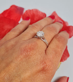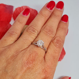 Très joli solitaire en or 18k et son très séduisant diamant ,apportera grâce et sublimité. Fourni avec un certificat d'authenticité et un certificat de gemmologie