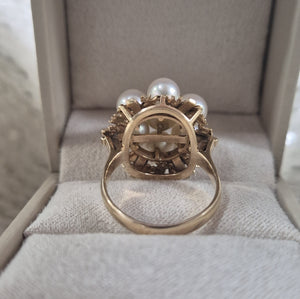 Magnifique bague en or 14 carats avec de belles perles blanches