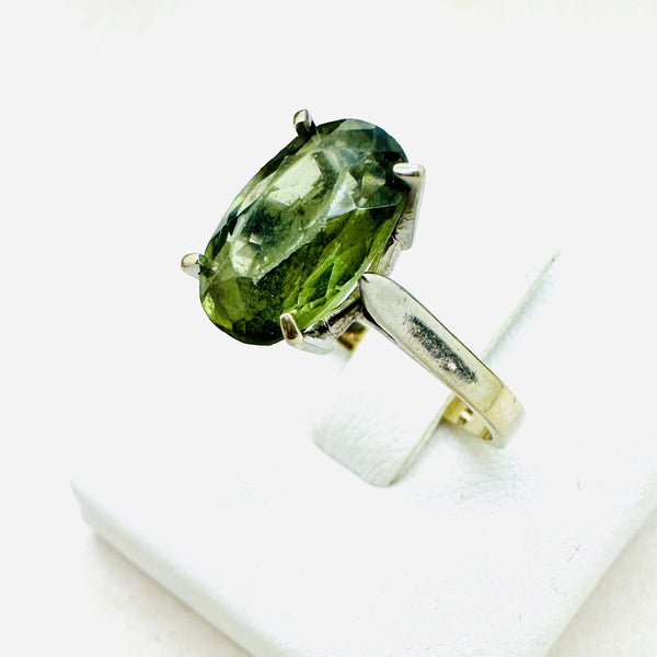 Bague en or gris avec une pierre verte