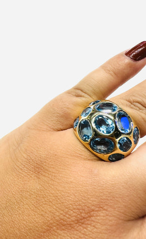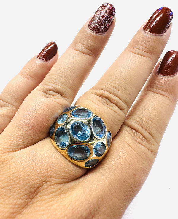 Magnifique bague en or jaune 750/1000 (18k), ornée de jolies topazes