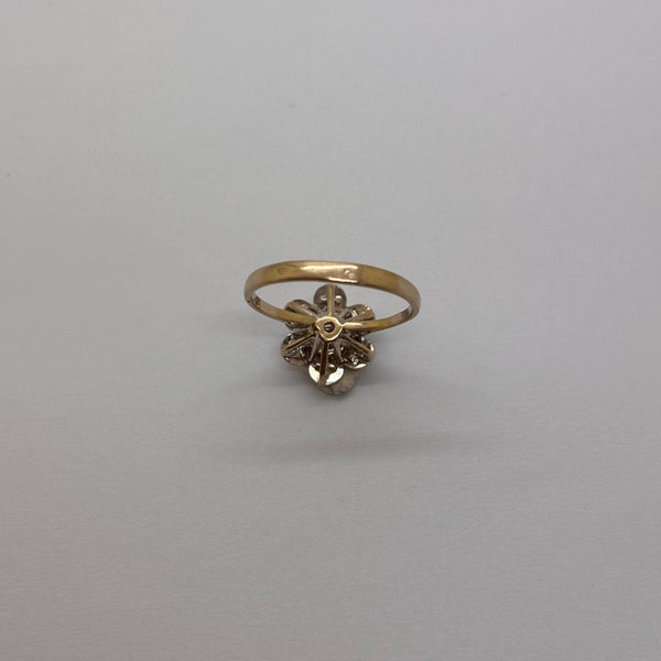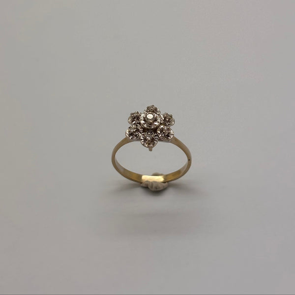 Bague empierrée en or blanc 750/1000 (18 carats), poinçonnée Tête d’Aigle, d’un poids de 2,11 grammes. Ce modèle en taille 47.5 est serti de 7 diamants, offrant un design classique et discret. Le bijou est proposé en bon état, avec des matériaux nobles et une finition soignée.