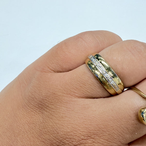 Très jolie bague en or jaune 750/1000 (18k), avec éclats de diamants