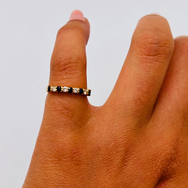 Bague en or jaune 18 carats (750/1000), sertie, en demi tour, de quatre saphirs et quatre diamants.