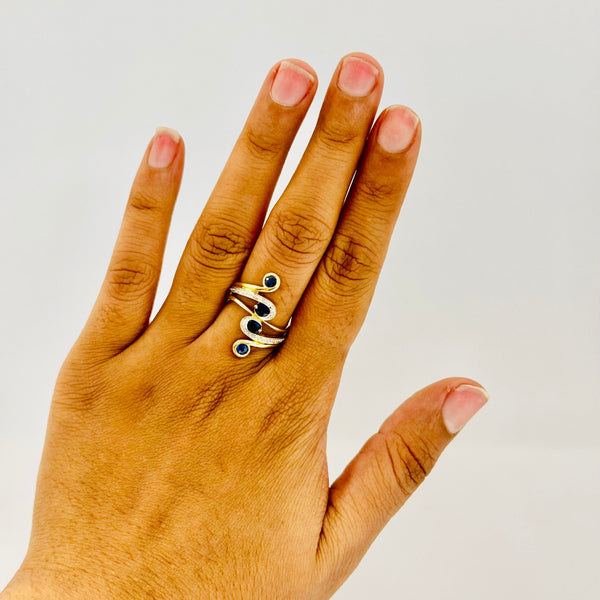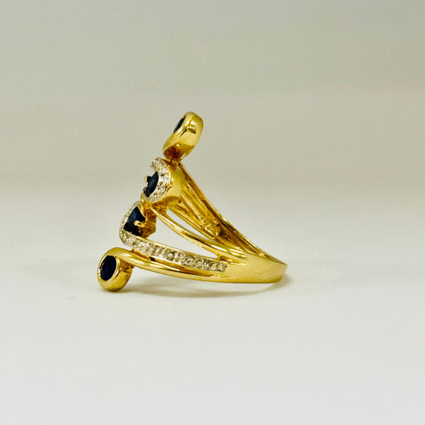 Bague ancienne en or jaune 18 carats avec 3 pierres – Taille 50