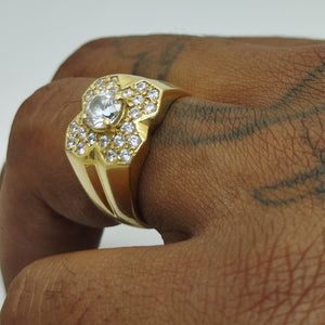 Magnifique bague chevalière en or jaune 18 carats (750/1000). Ornée de diamants . Avec un zirconium au centre. Pesant 8.97 grammes.Taille 60.