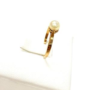 Bague en or jaune 18 carats (750/1000), poinçonnée à la tête d’aigle, d’un poids de 1,67 gramme et correspondant à une taille 53. Elle est ornée d’une perle d’eau douce en son centre, apportant une touche de raffinement classique. Le bijou est présenté en très bon état général.