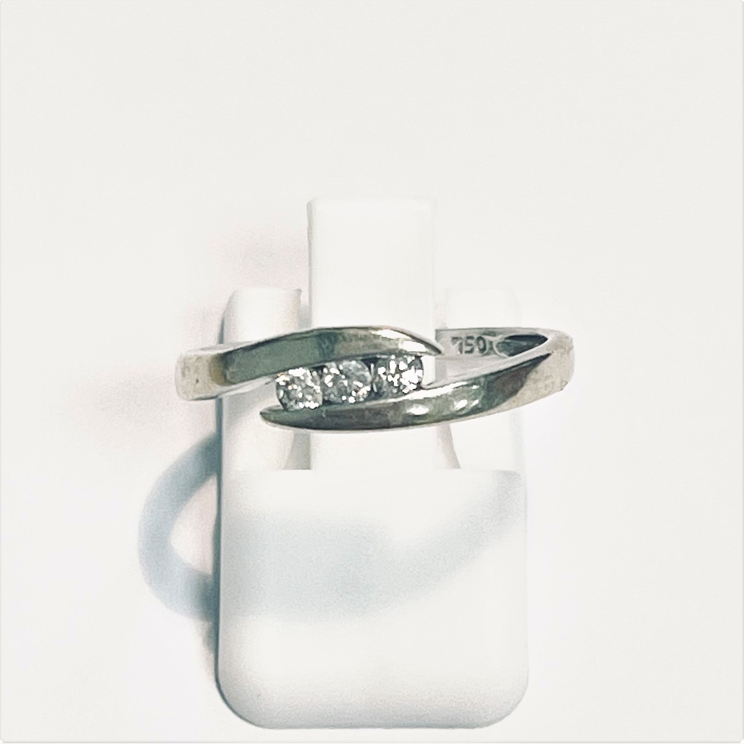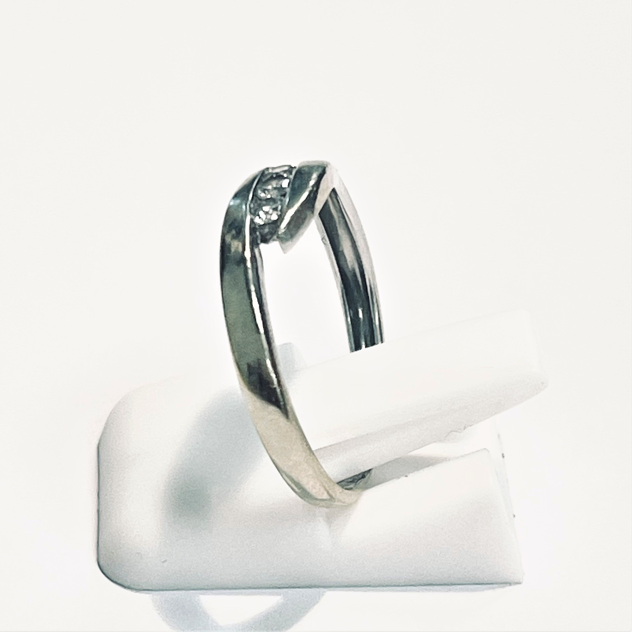 Très jolie bague en or blanc sertie de 3 diamants 0.02 carats