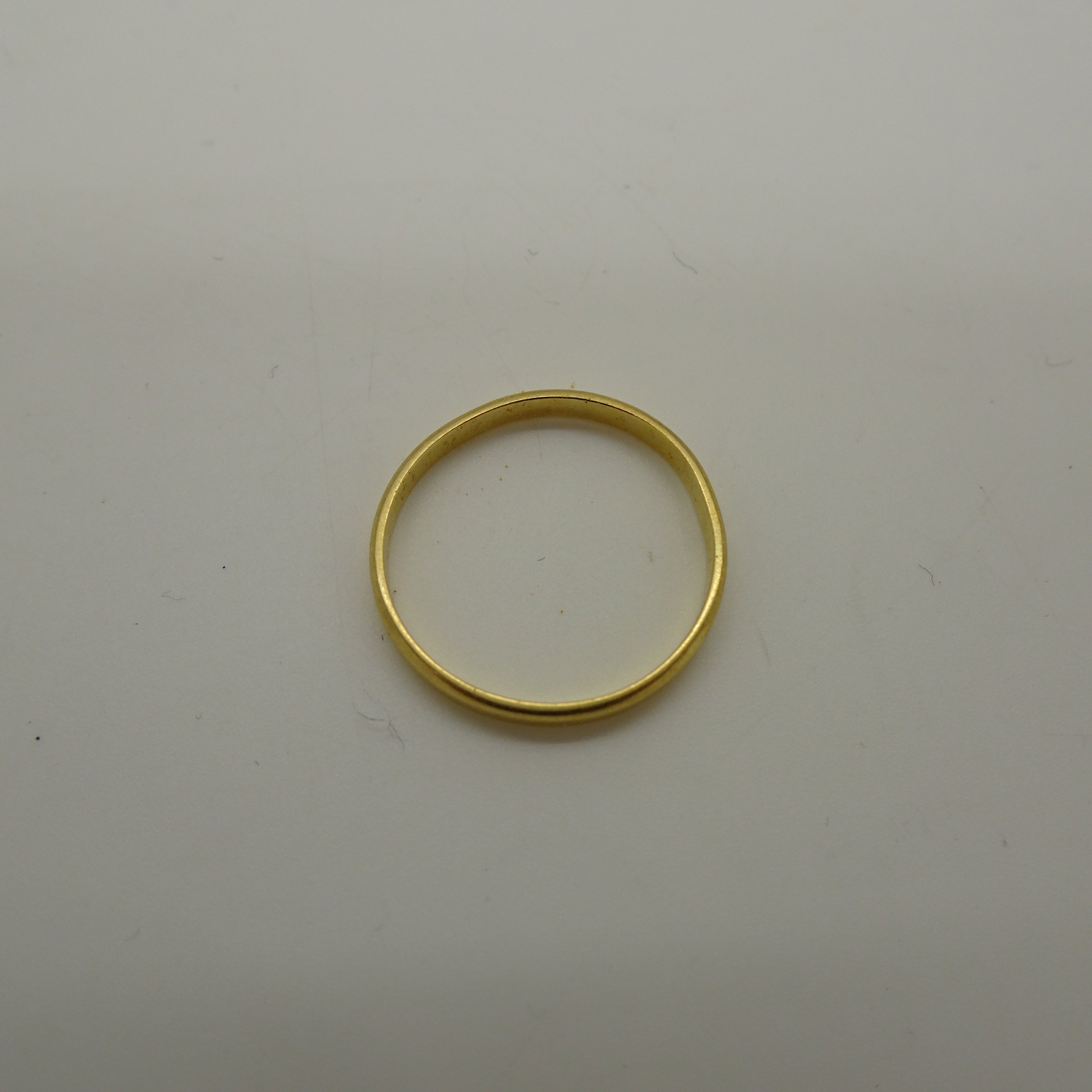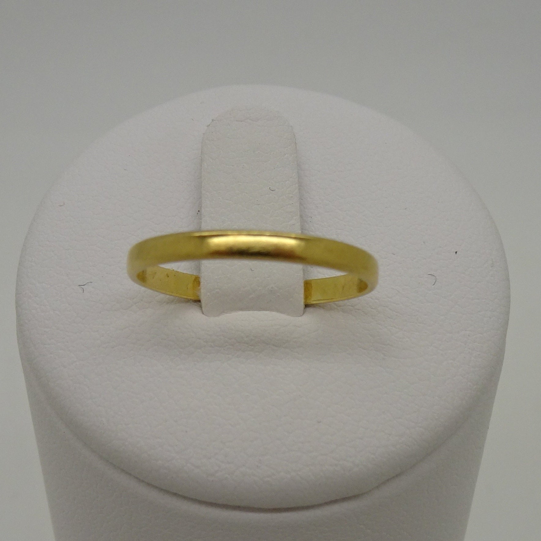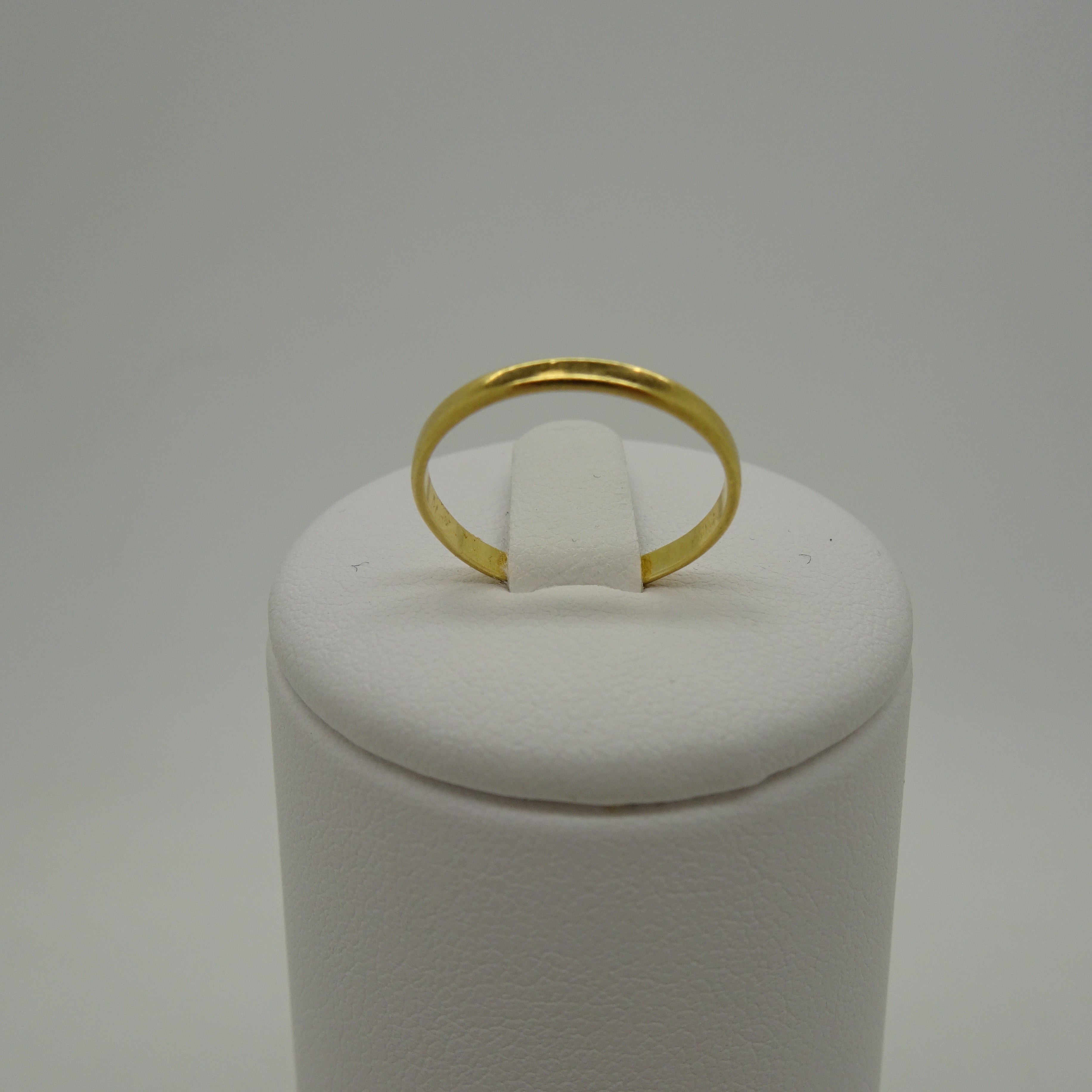 Anneau en or jaune 18 carats (750/1000), sans poinçon, poids de 1,22 g, taille 52. Ce modèle sans pierres est en très bon état.