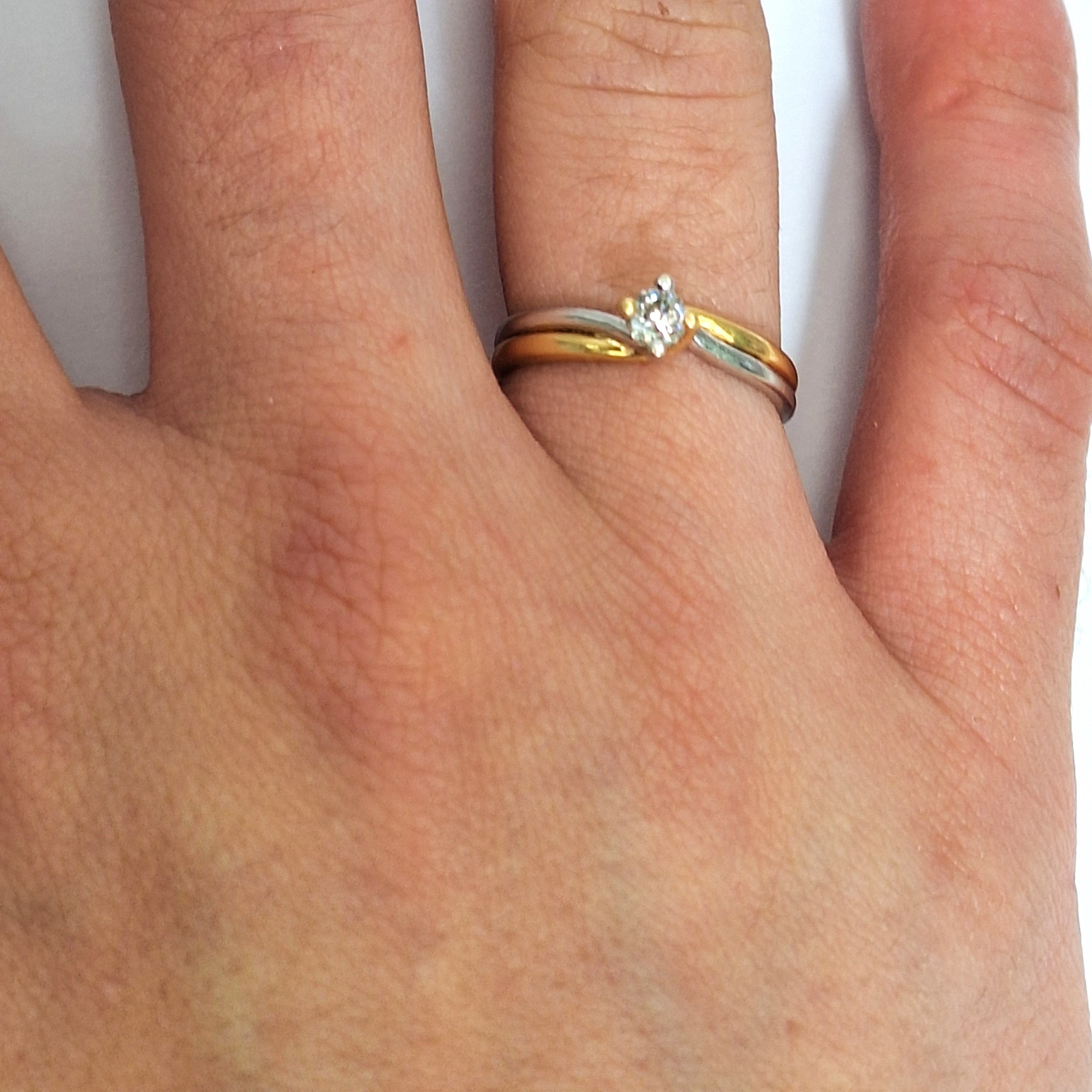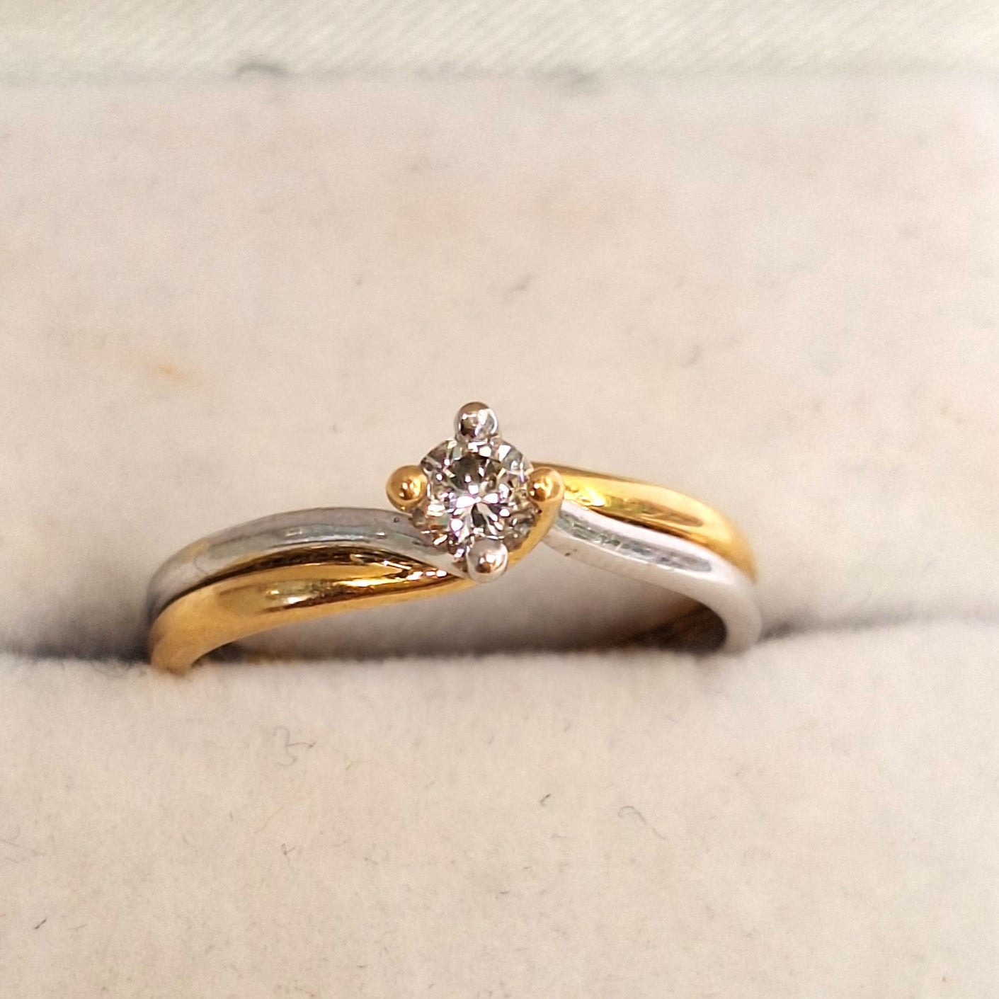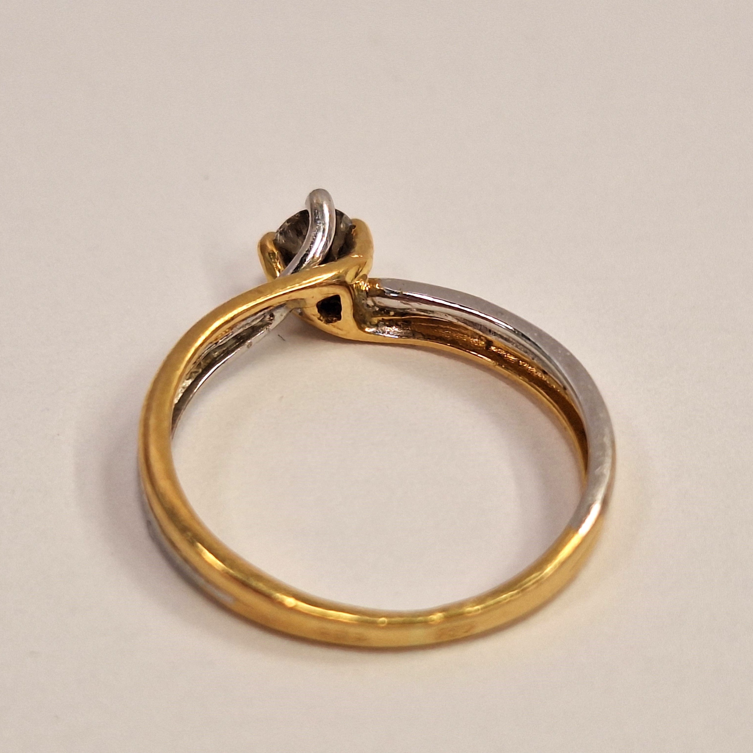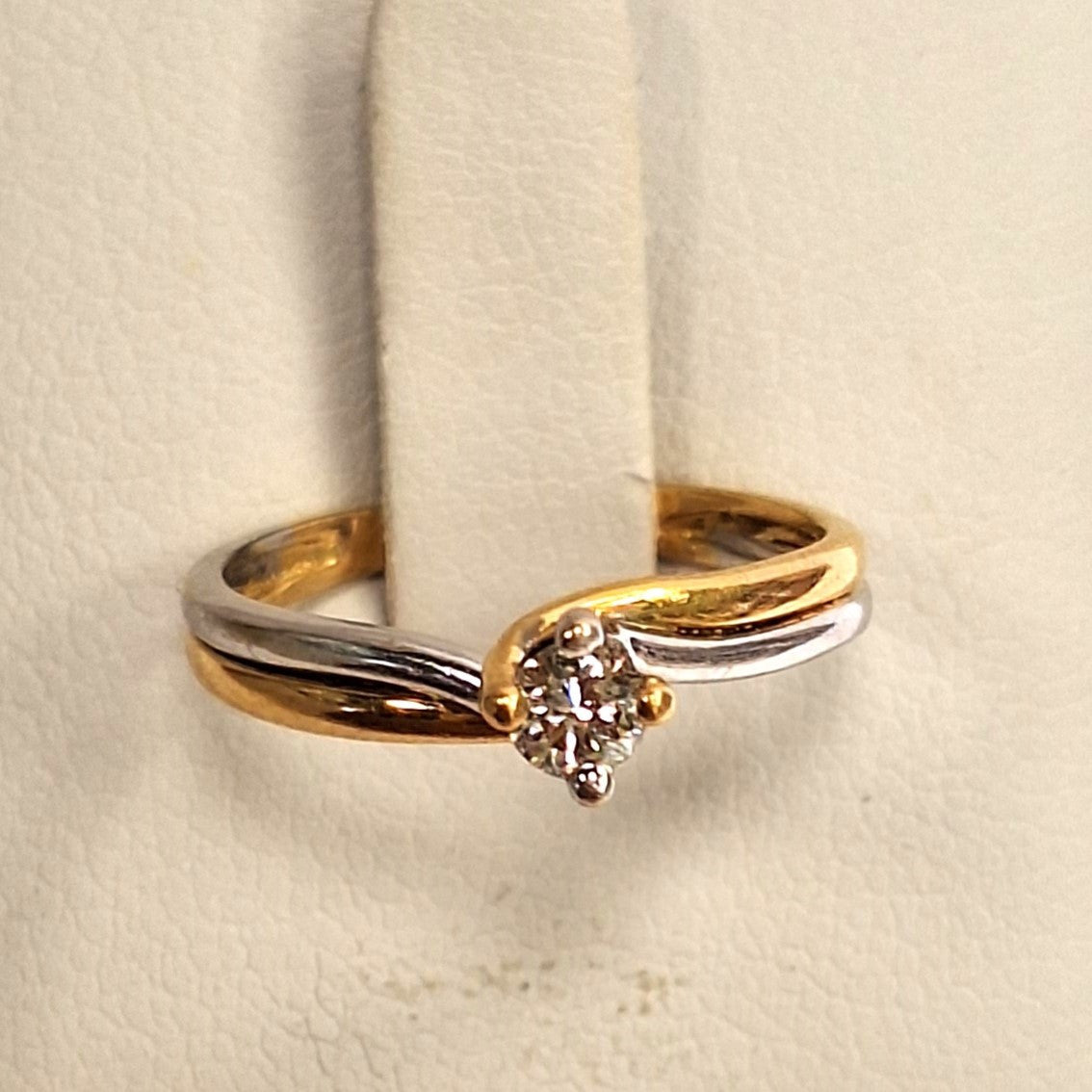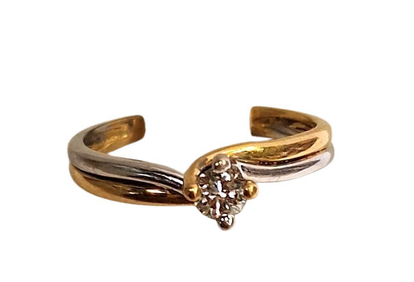 Très jolie solitaire deux ors (blanc et jaune) 18 carats sertie d'un diamant de 0.15 carats