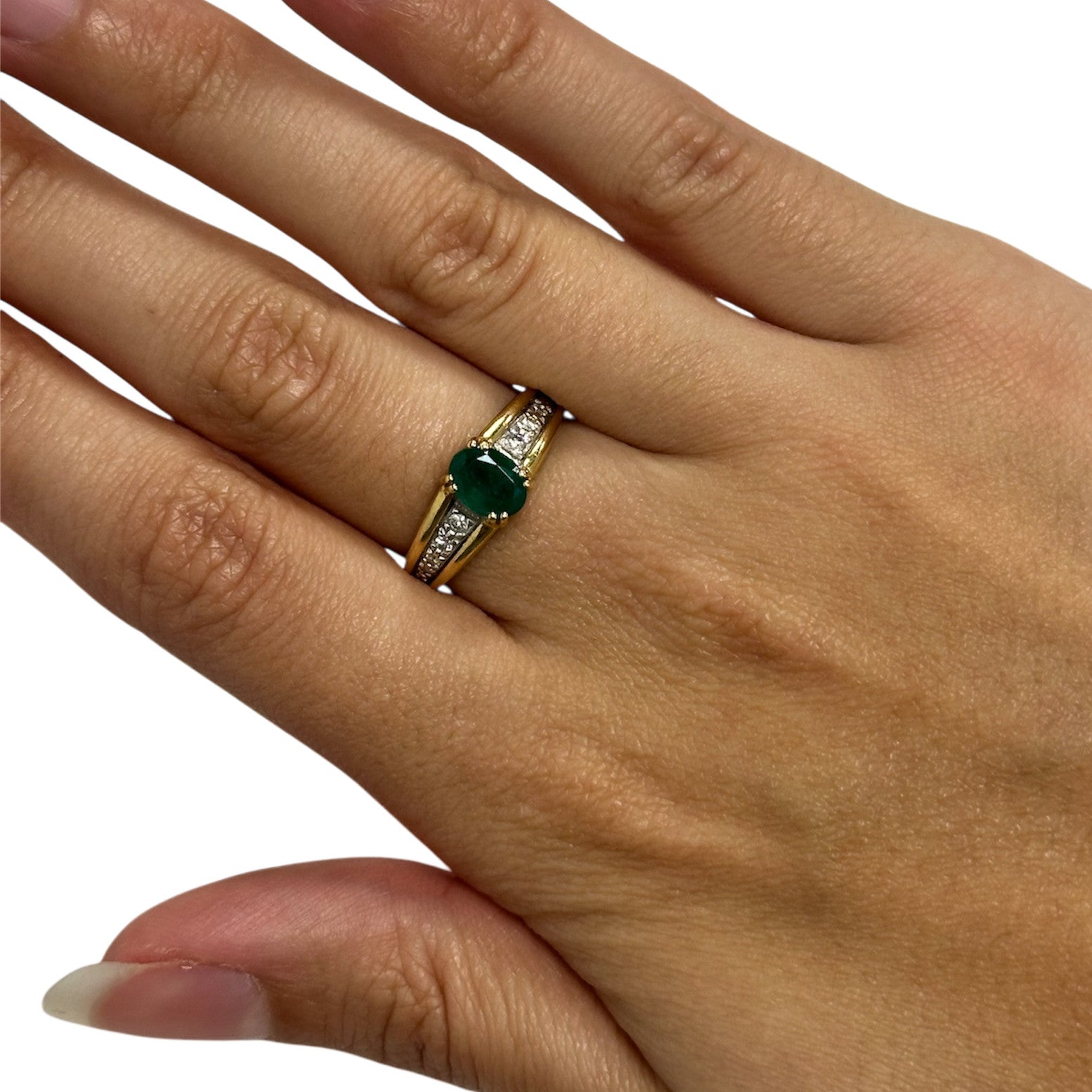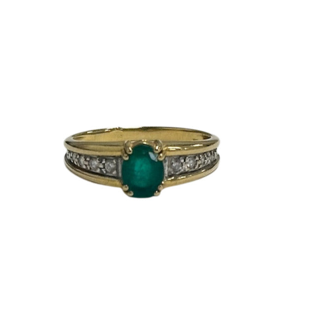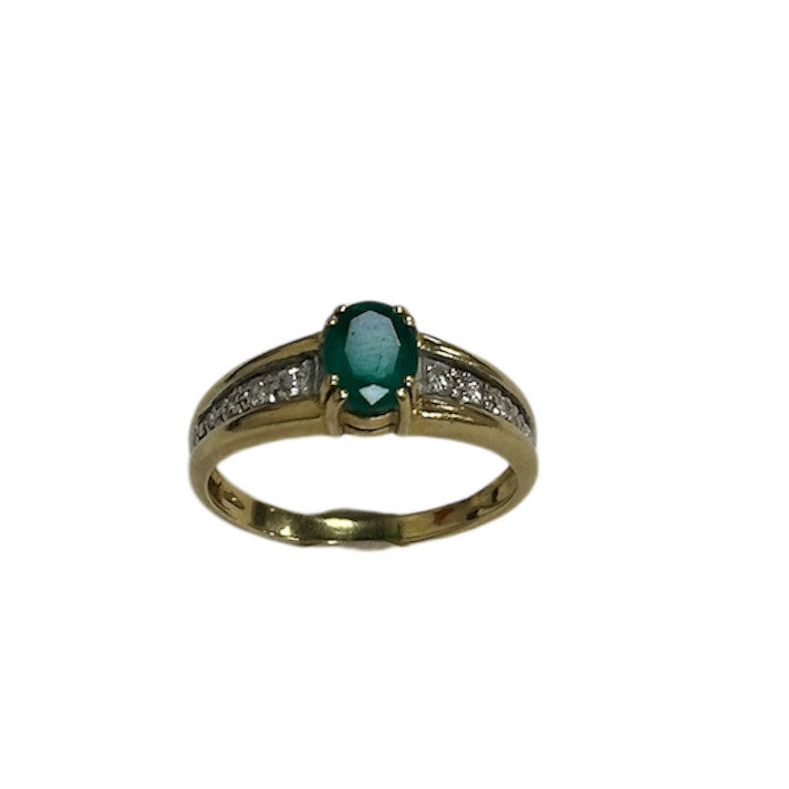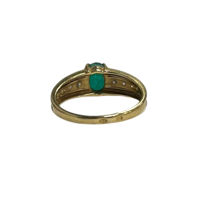Bague 2 Ors avec Diamants et Pierre Verte