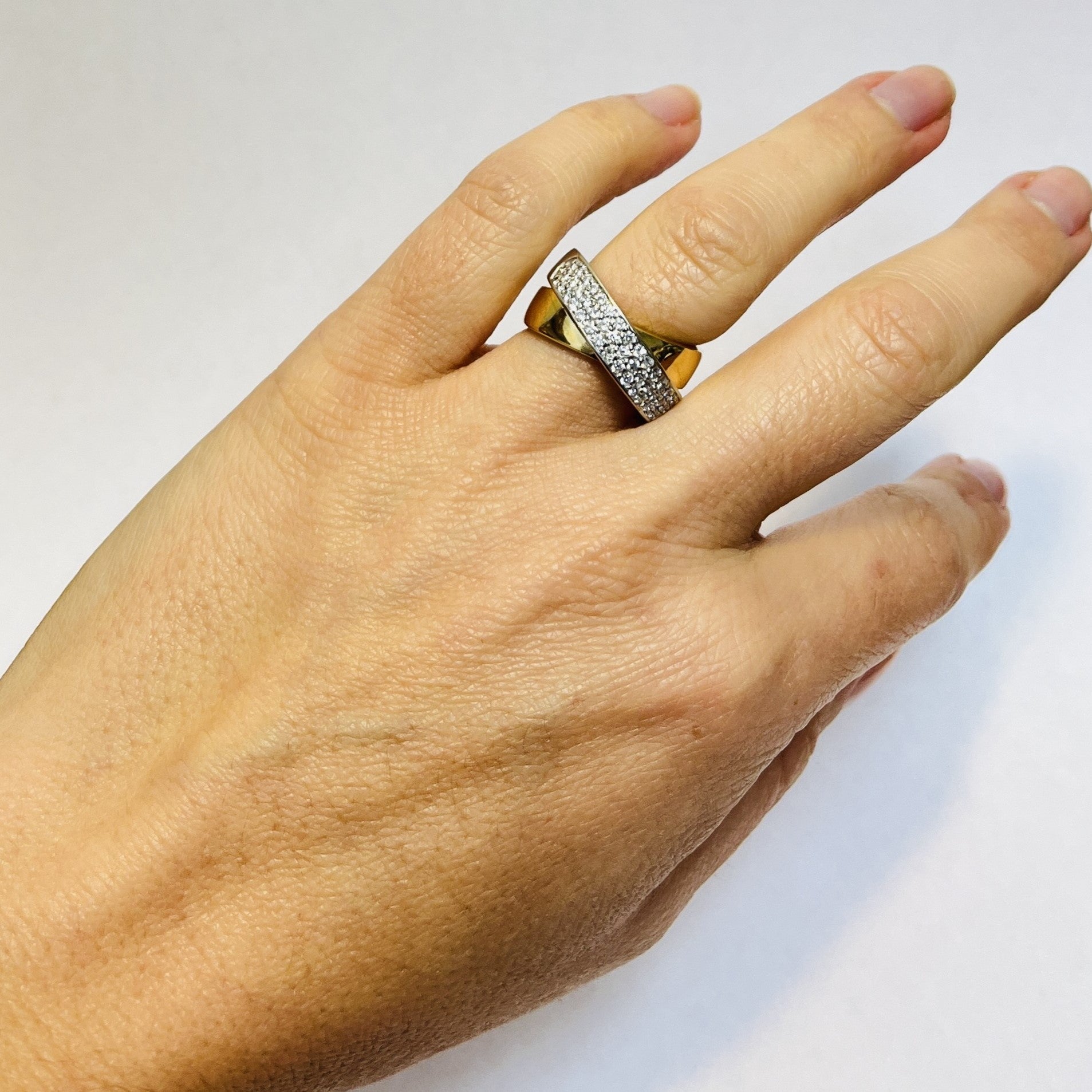 Belle bague 2 ors avec éclats de diamants