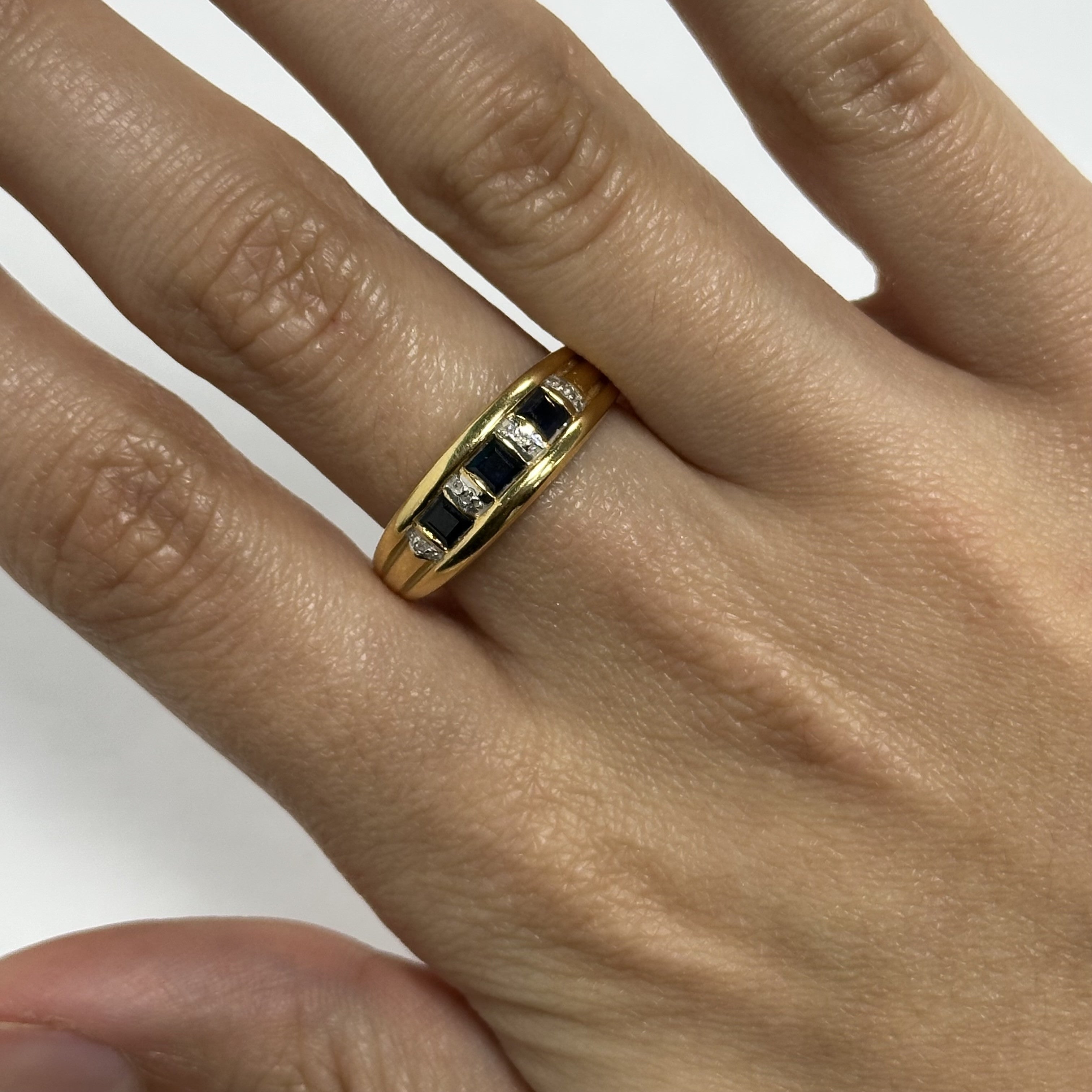 Pierres : 3 pierres bleues naturelles + 4 diamants de 0.01 carat