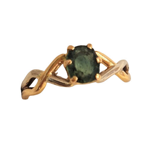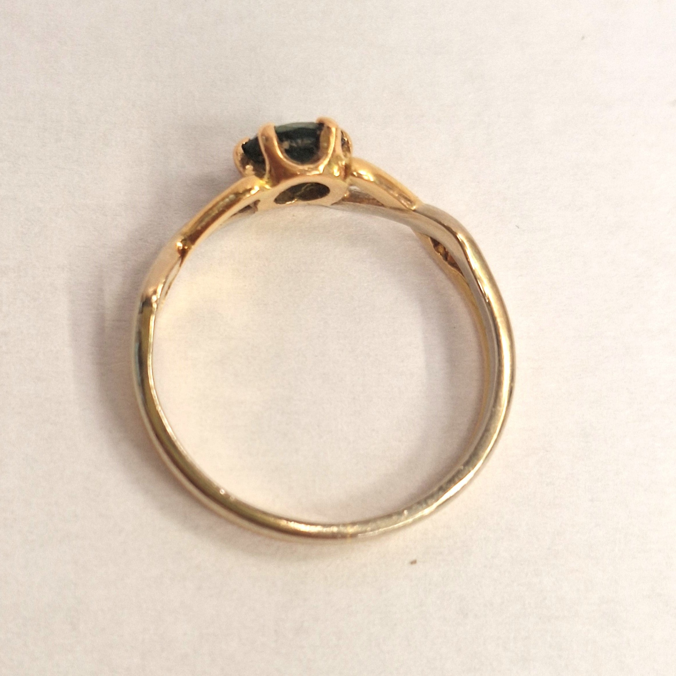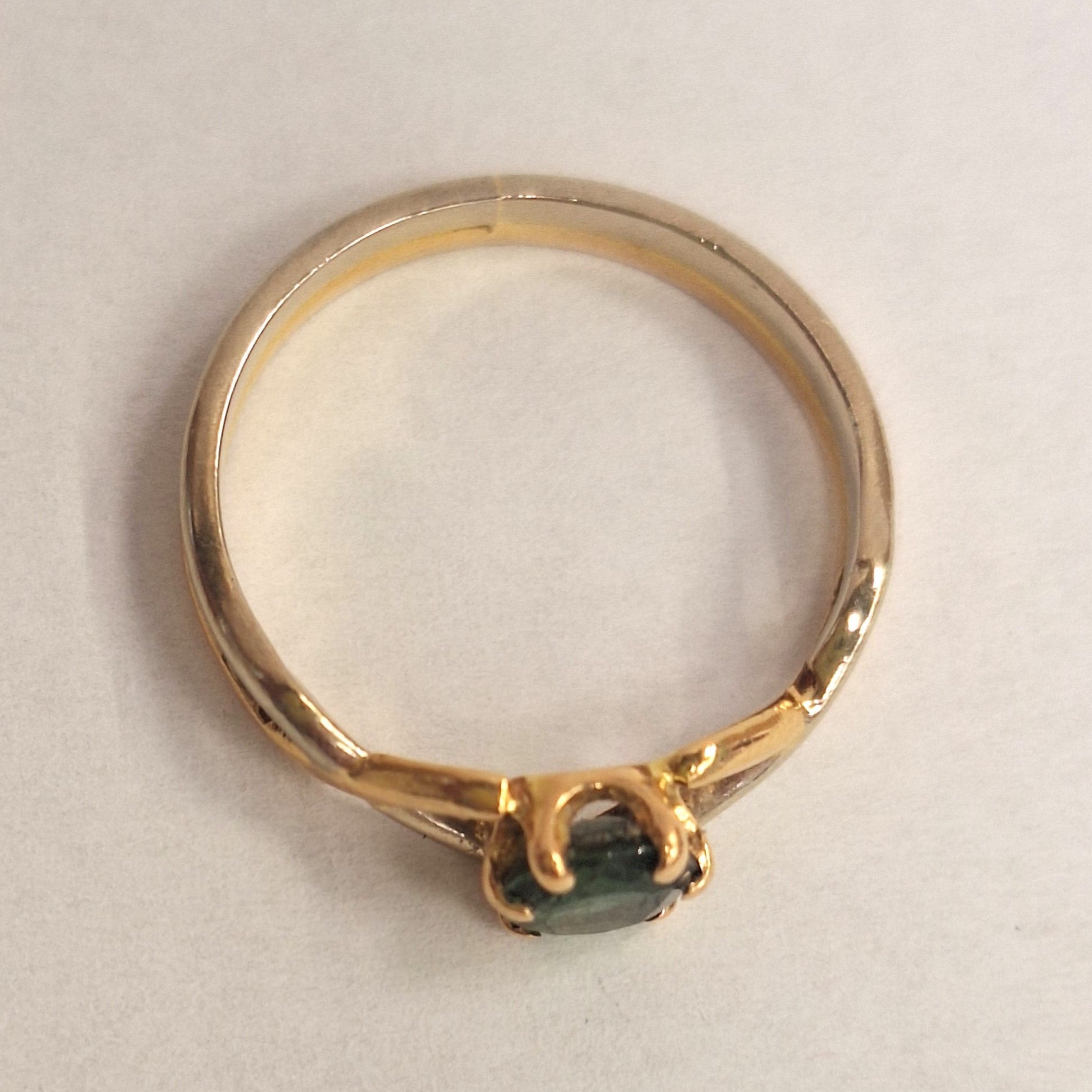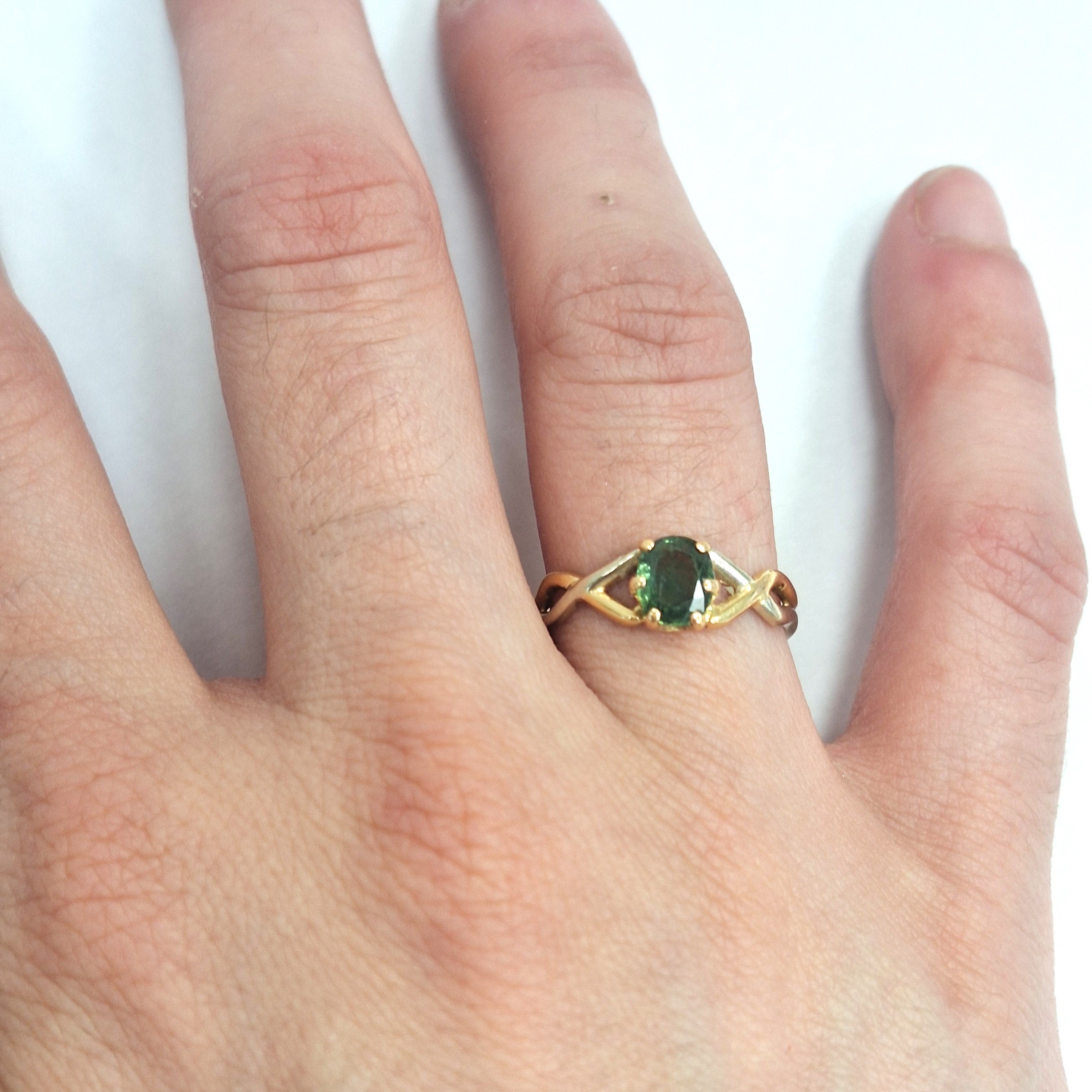 Jolie bague en or jaune 18 carats et or blanc sertie d'une jolie pierre précieuse verte.
