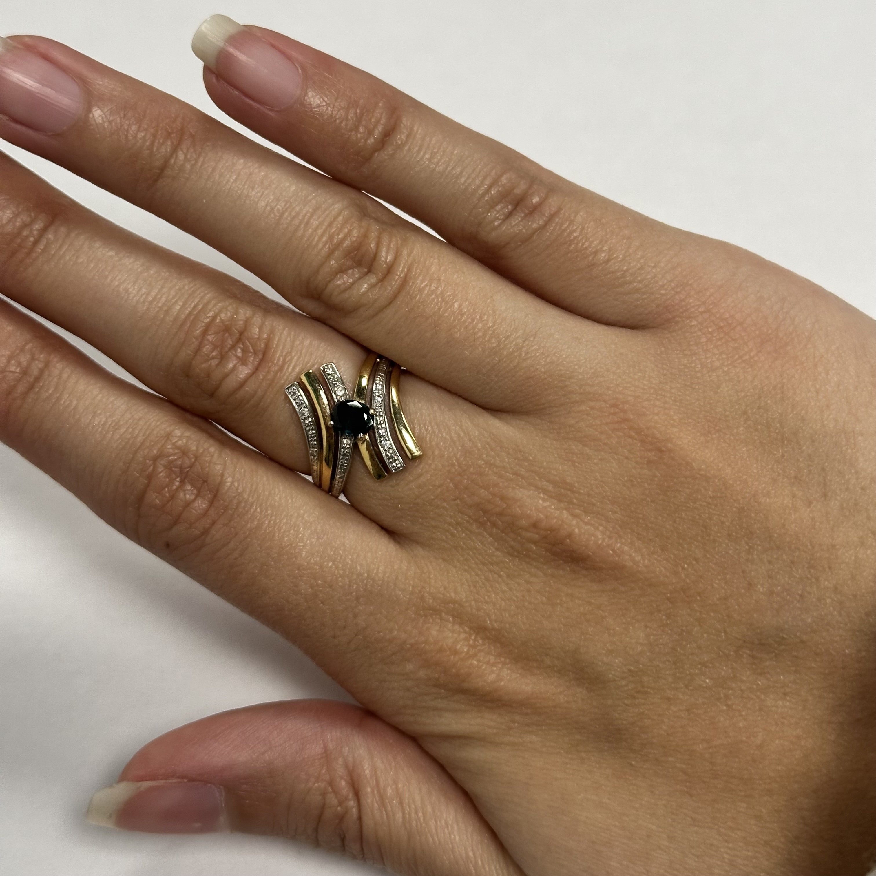 Bague 2 Ors avec Saphir et Diamants