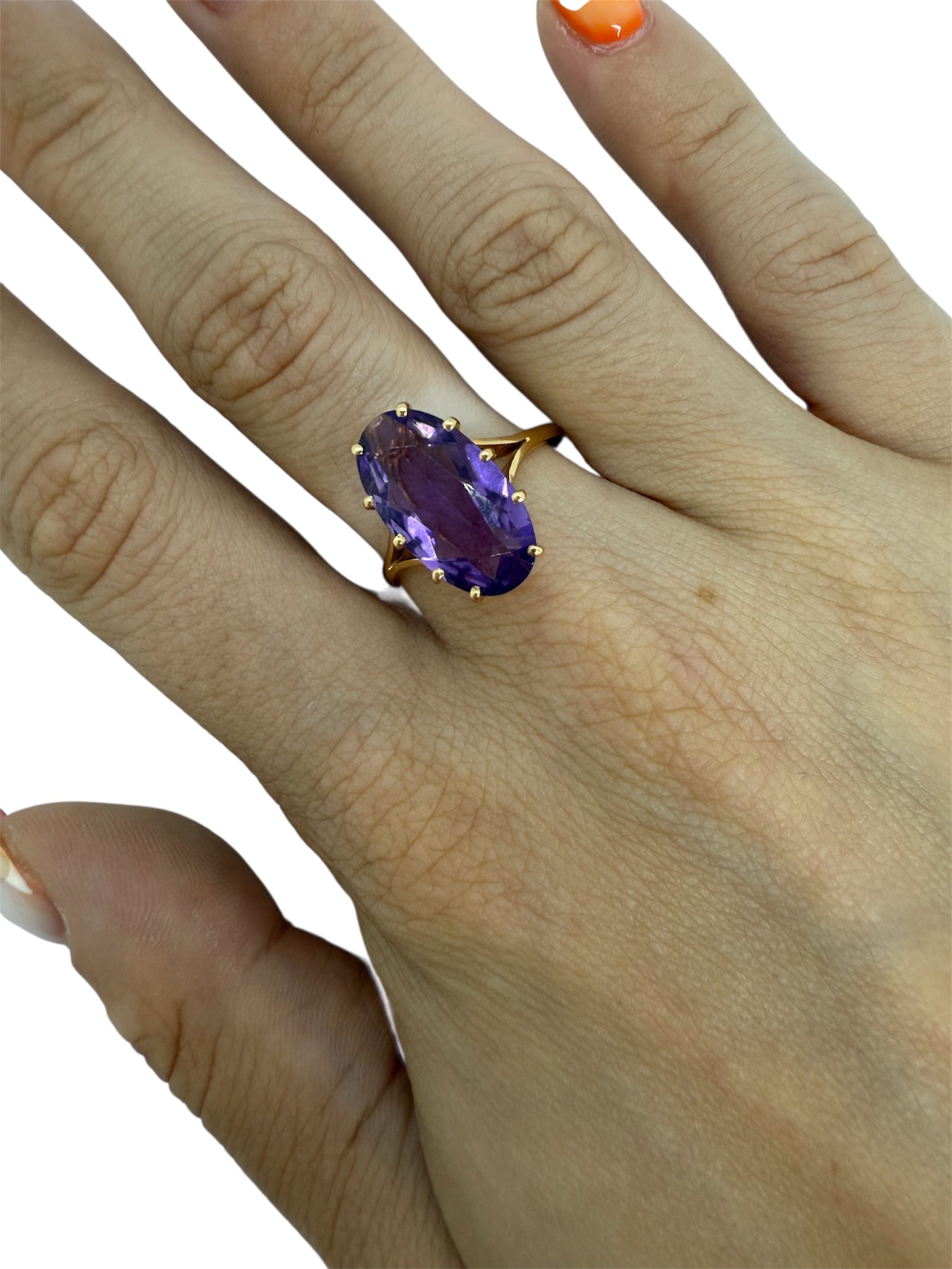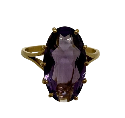 Bague ancienne de type solitaire est réalisée en or jaune 18 carats (750/1000) et se présente en très bon état, bien qu’elle ne porte pas de poinçon. Elle est ornée d’une améthyste de 2 carats, qui lui apporte une touche de couleur profonde et raffinée. D’un poids de 3,54 grammes et proposée en taille 57.