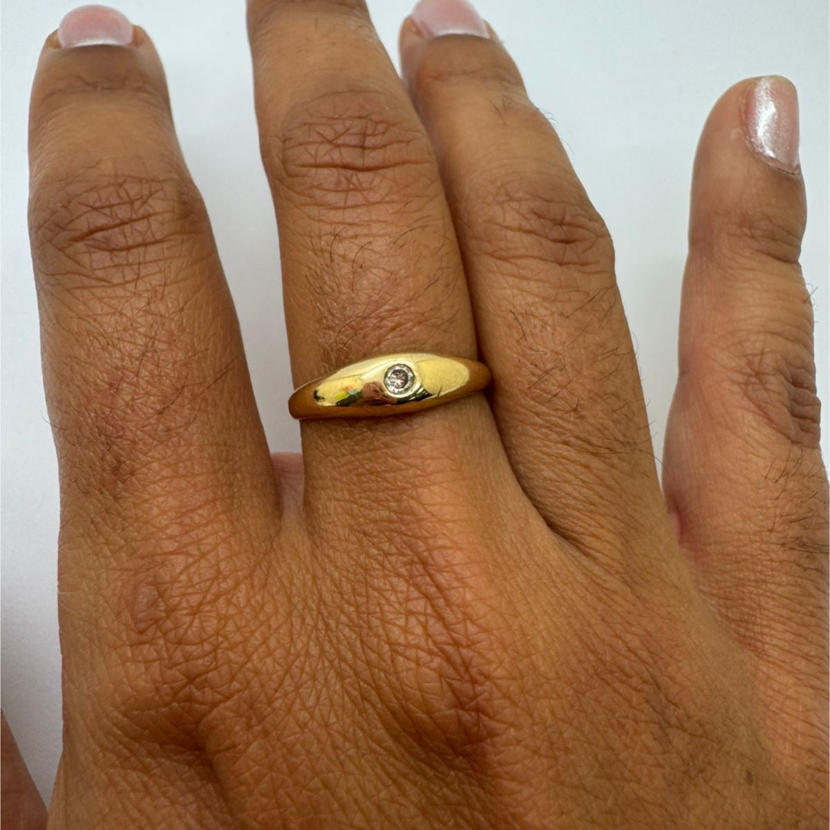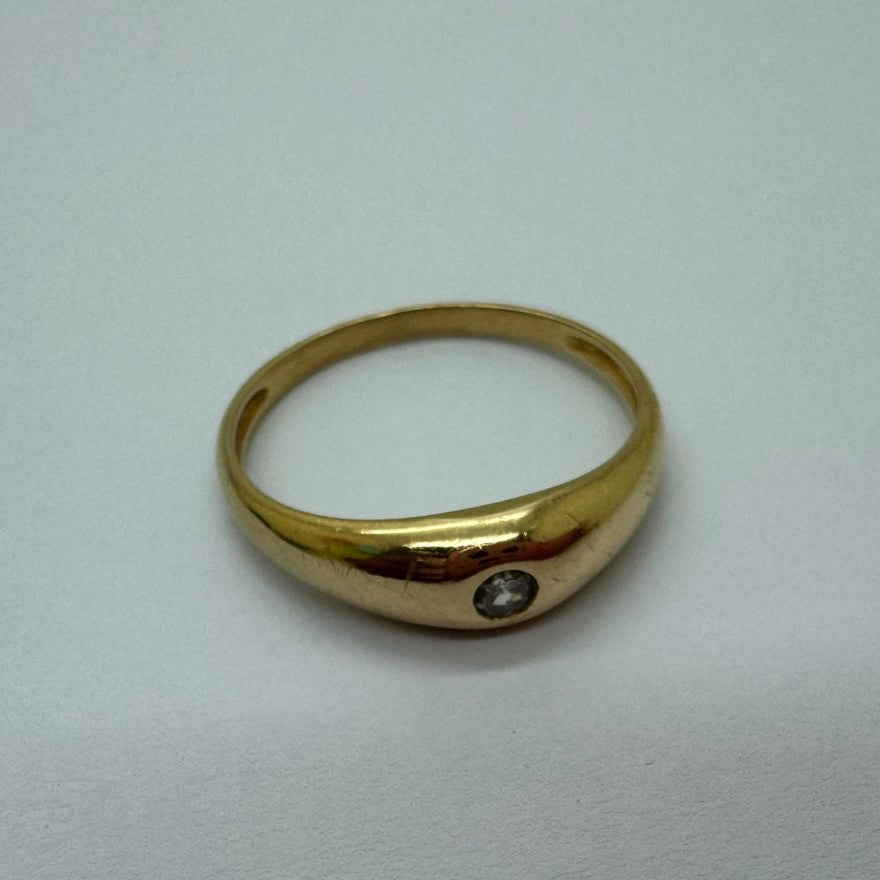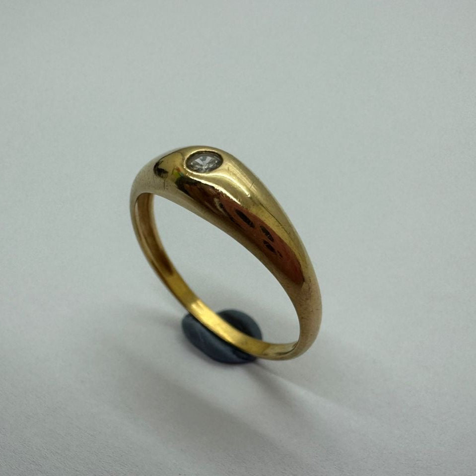 Chevalière en or jaune 18 carats (750/1000), sertie élégamment d'un diamant discret.