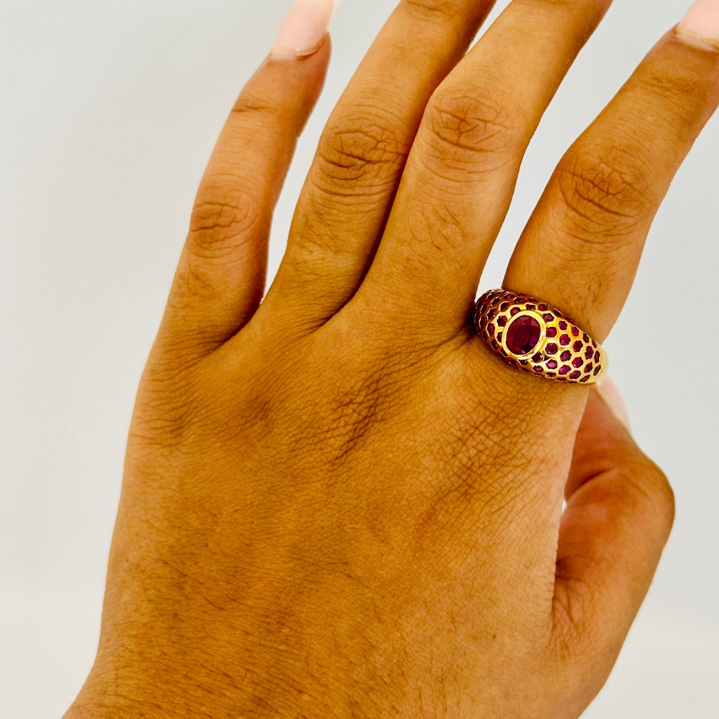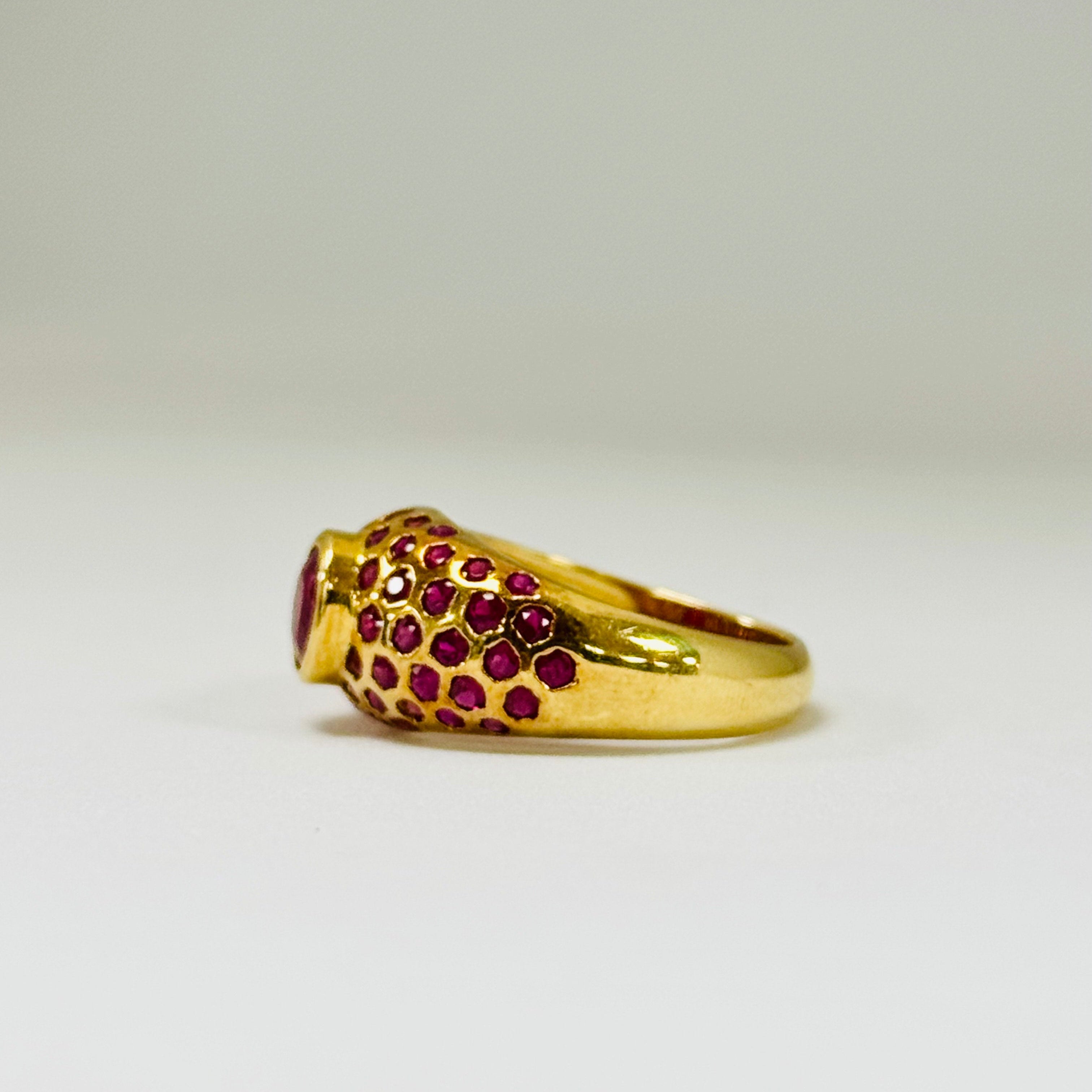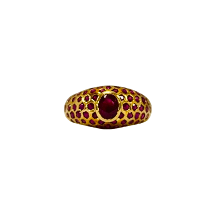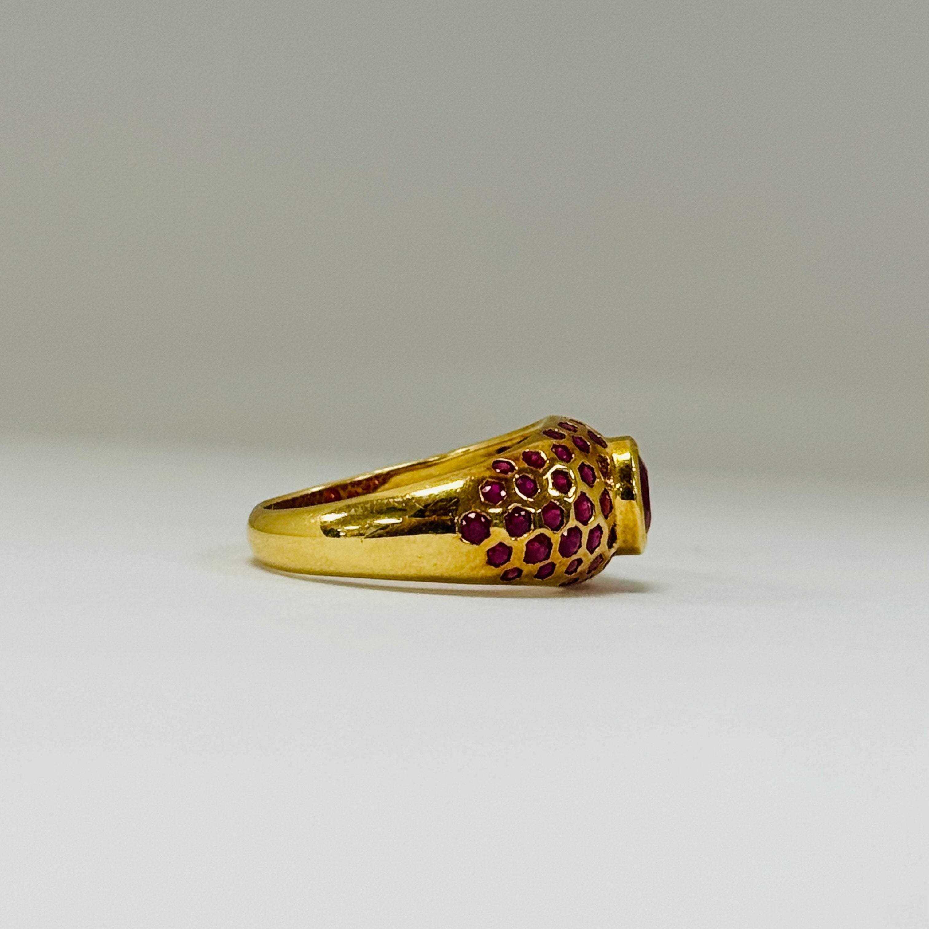 Bague de type chevalière est réalisée en or jaune 18 carats (750/1000) et porte le poinçon 750, garantissant la qualité du métal. Avec un poids de 6,24 grammes et une taille 56, elle offre une présence marquée tout en restant confortable au porté. Elle est ornée d'une pierre dont la nature n’est pas précisée.