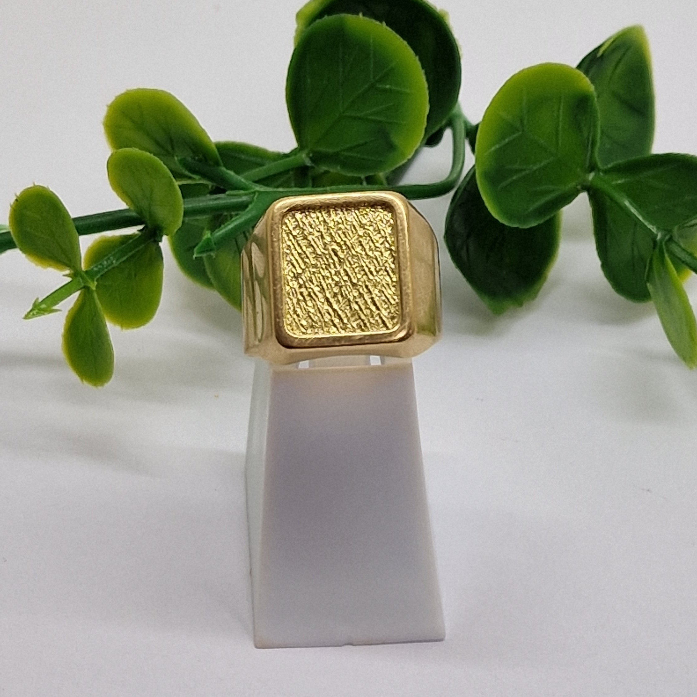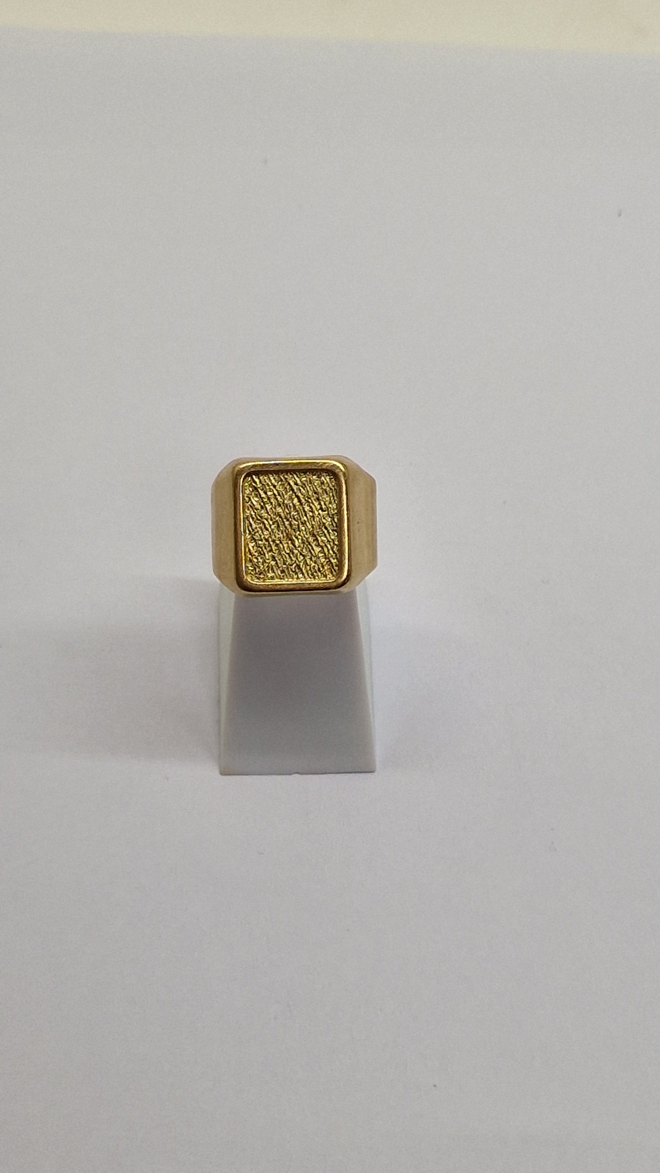 Chevalière en or jaune 18 carats (750), sans pierre, au design classique et élégant. Poinçon Tête d’Aigle. Poids : 7,50 g – Taille 61. En très bon état.