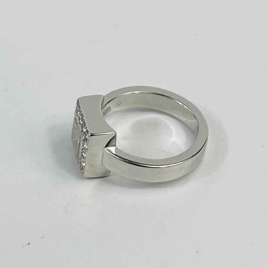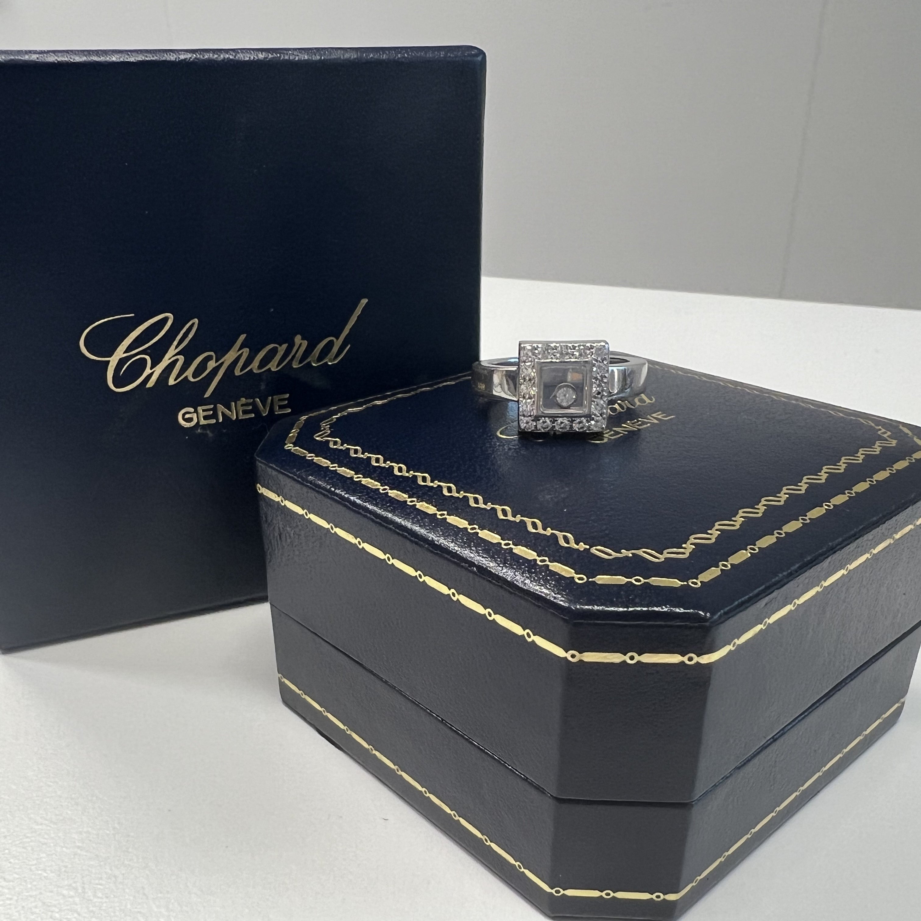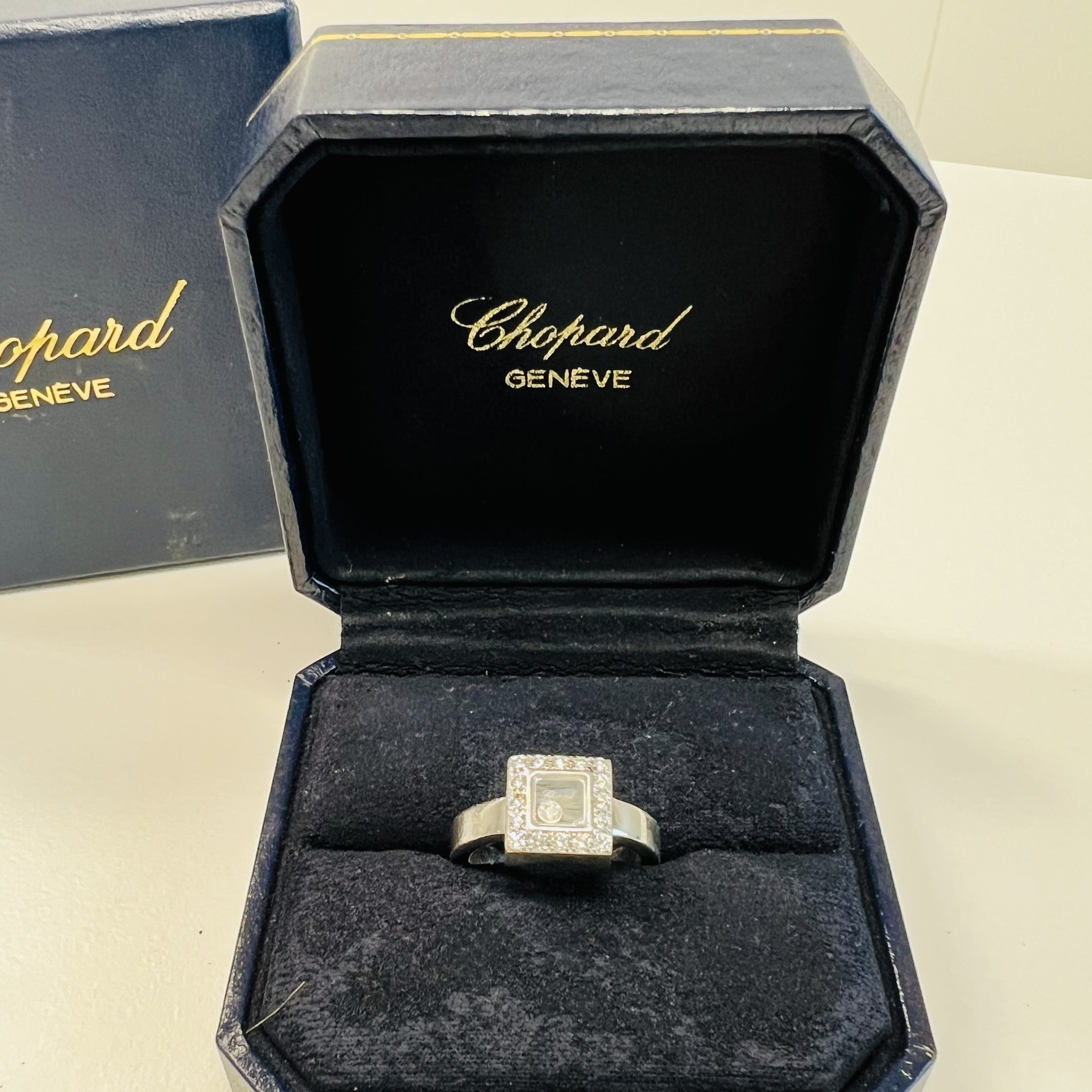 Belle bague bague Chopard Happy Diamond or blanc 750/1000 ornée d'un diamant mobile 0.48ct et 16 diamants 0.02ct