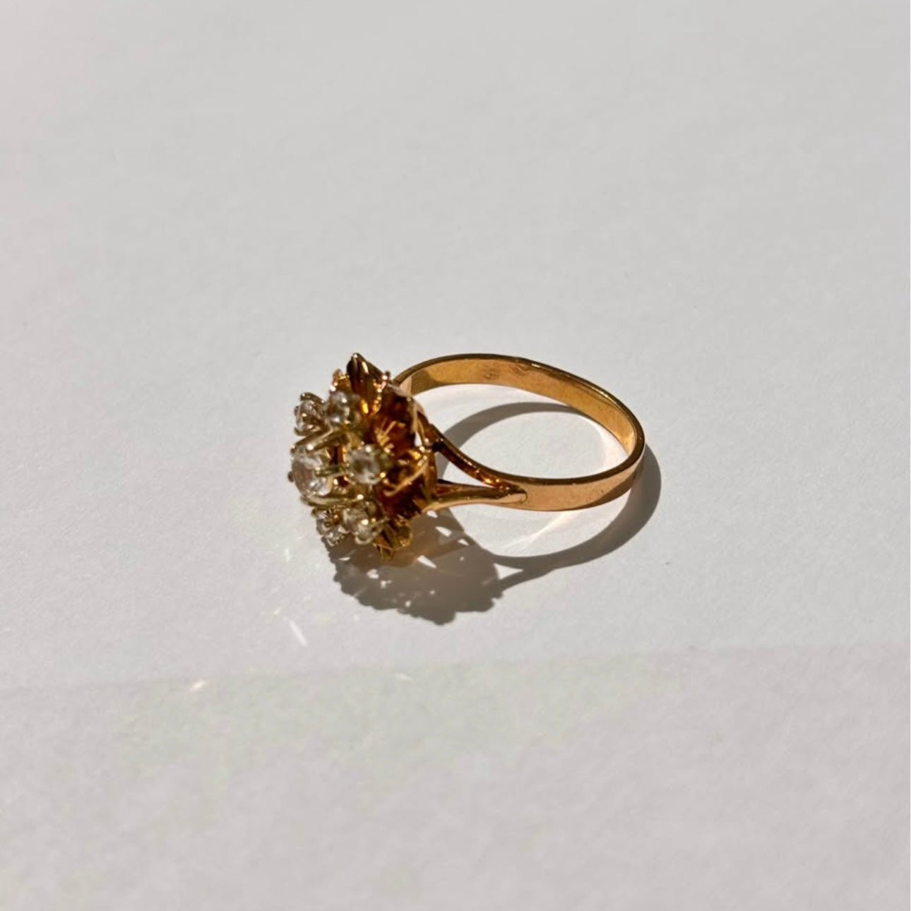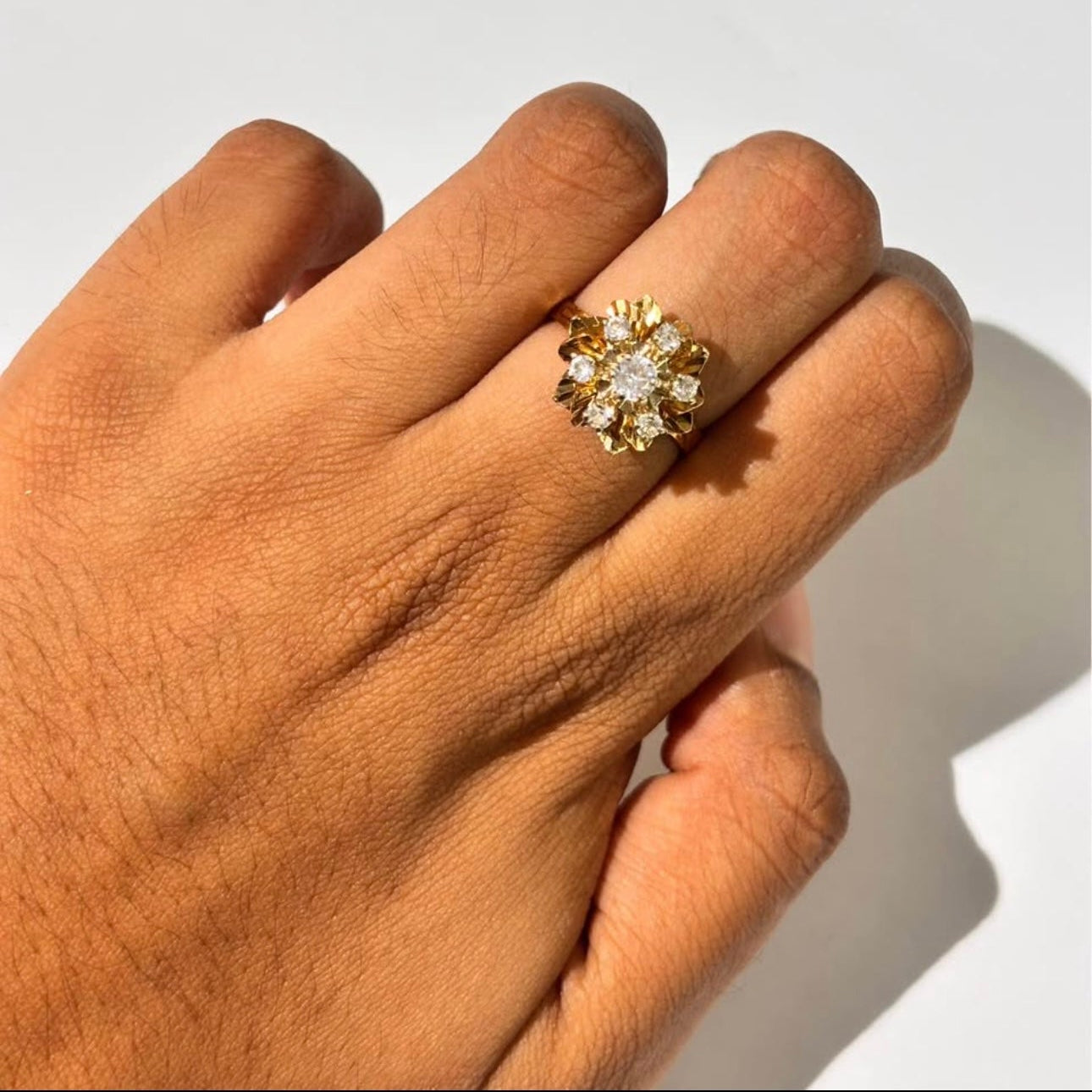 Bague en or jaune 750/1000 (18 carats), poinçonnée tête d’aigle, taille moyenne (54), poids 3,54 g. Sertie de 7 oxydes de zirconium pour une brillance élégante. En excellent état, idéale pour un style raffiné au quotidien.