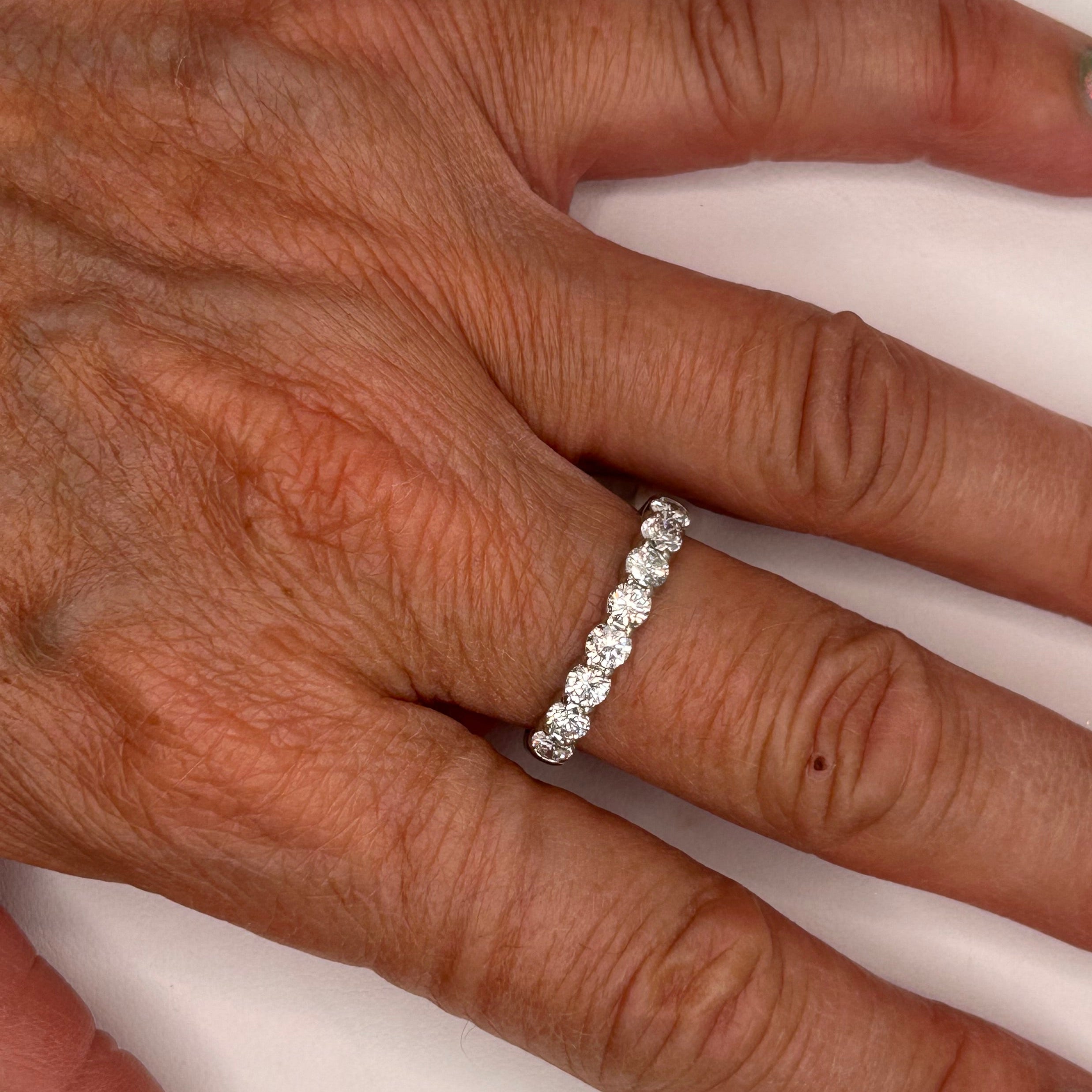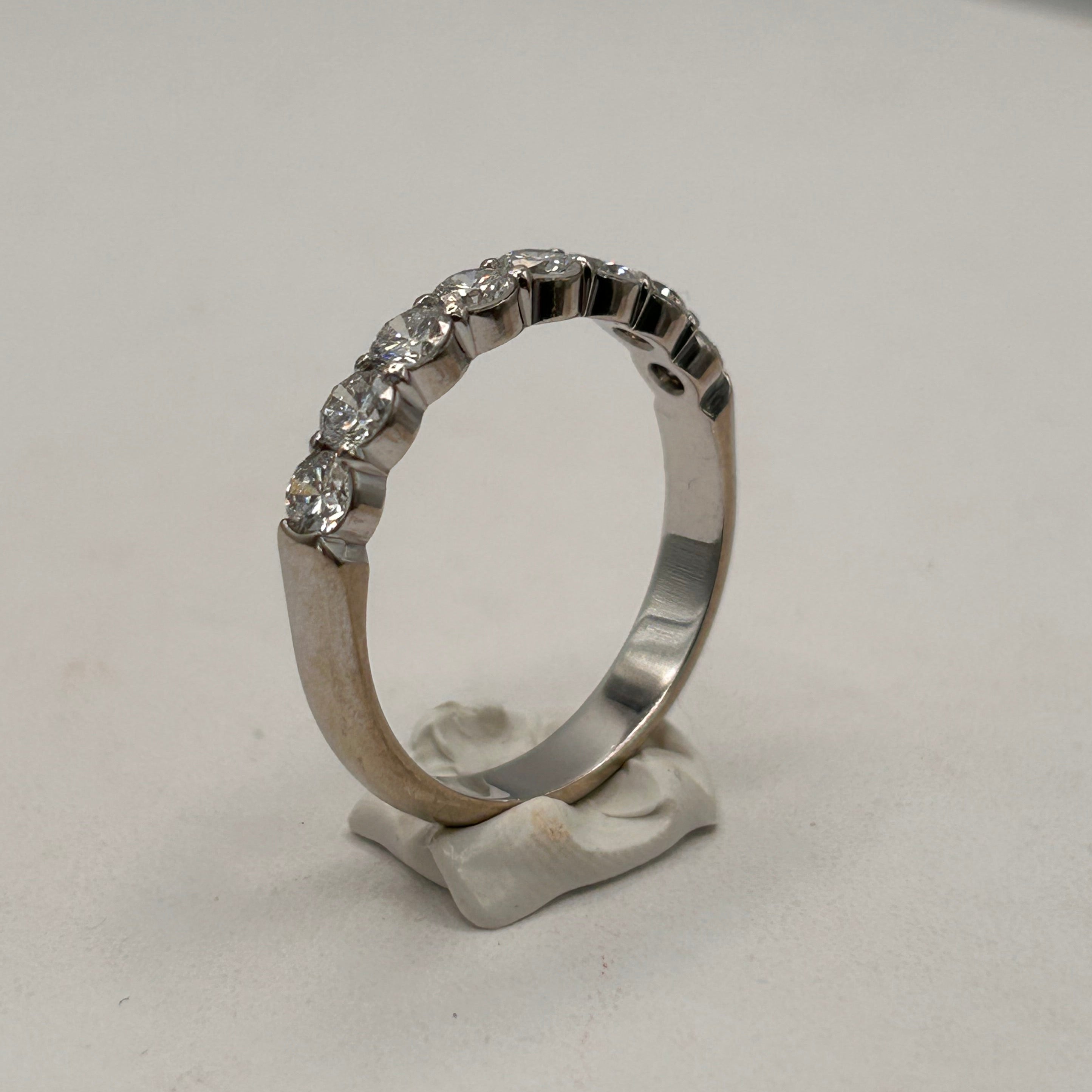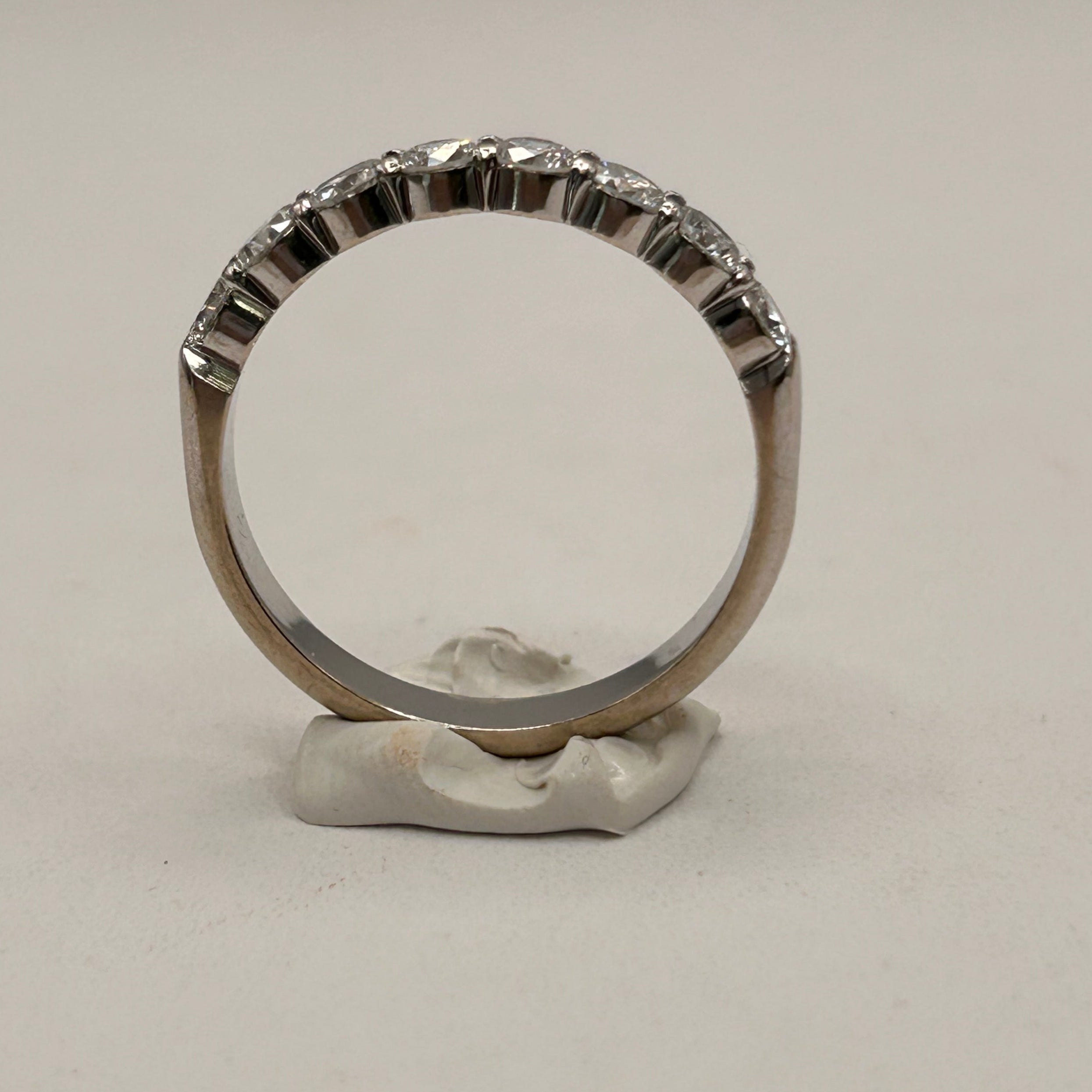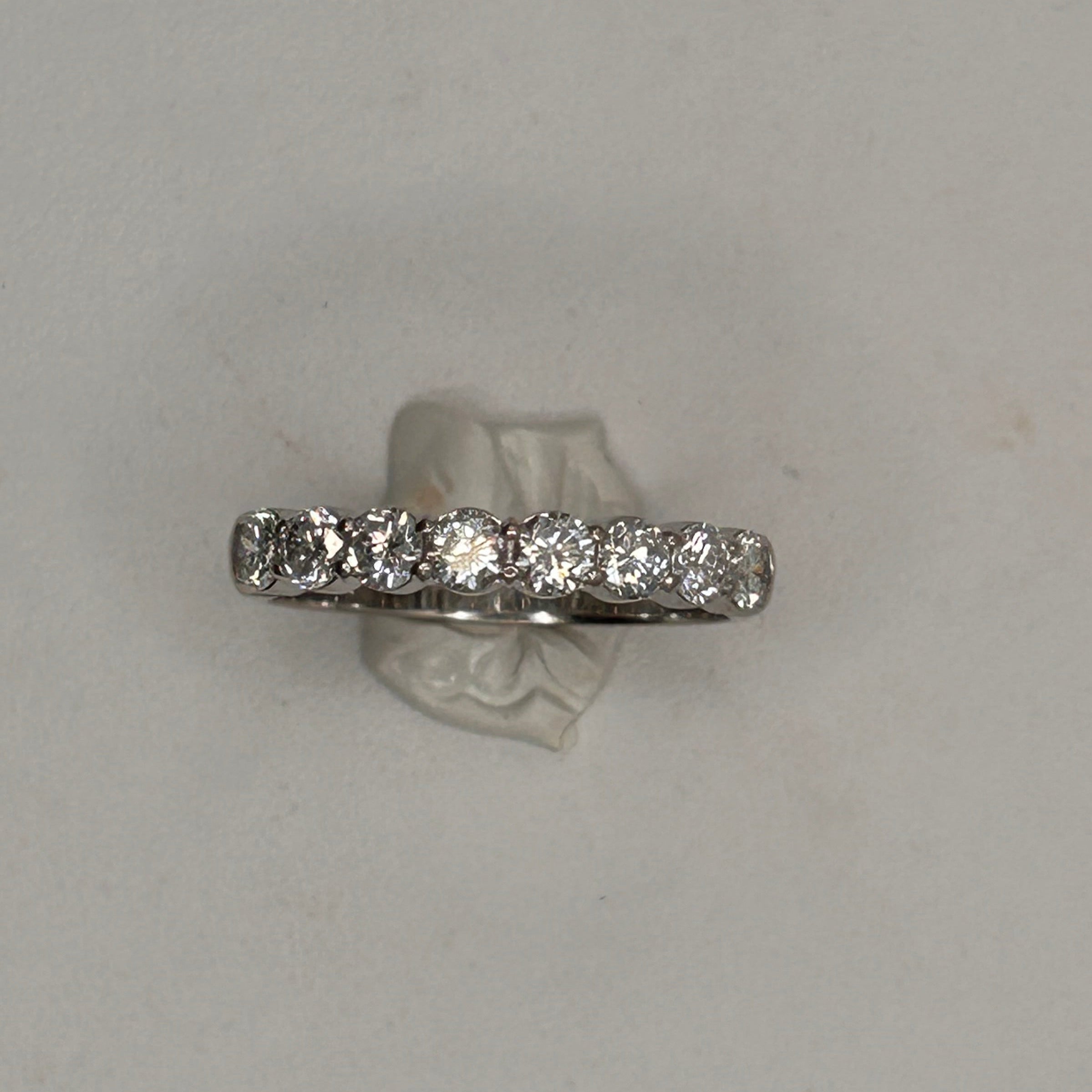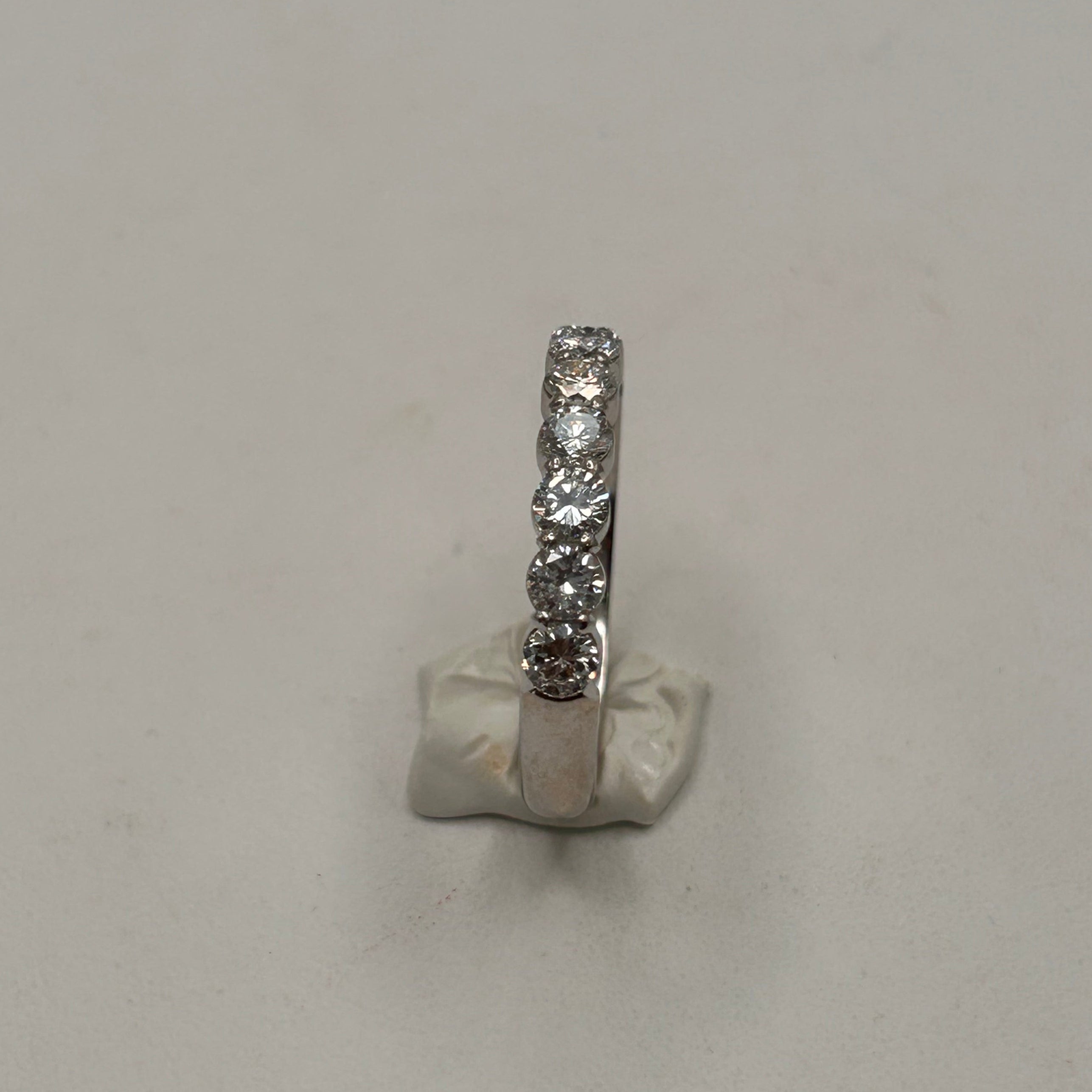 Bague demi-tour en or blanc 18 carats (750/1000) avec poinçon Tête d’Aigle, ornée de 8 diamants pour un total d’environ 1,20 carat (0,15 carat chacun). Taille 61, poids de 4,74 grammes. Elle est en très bon état.