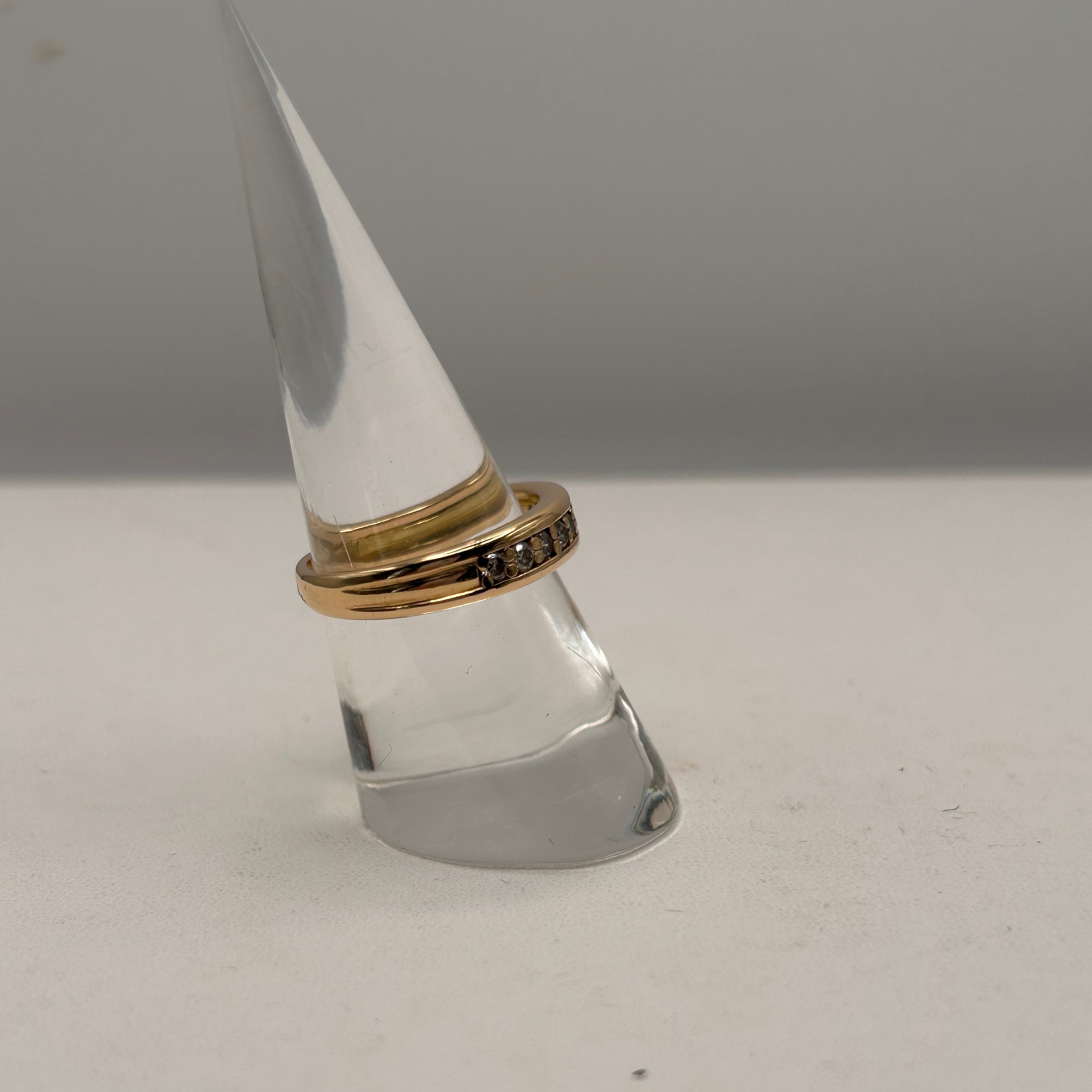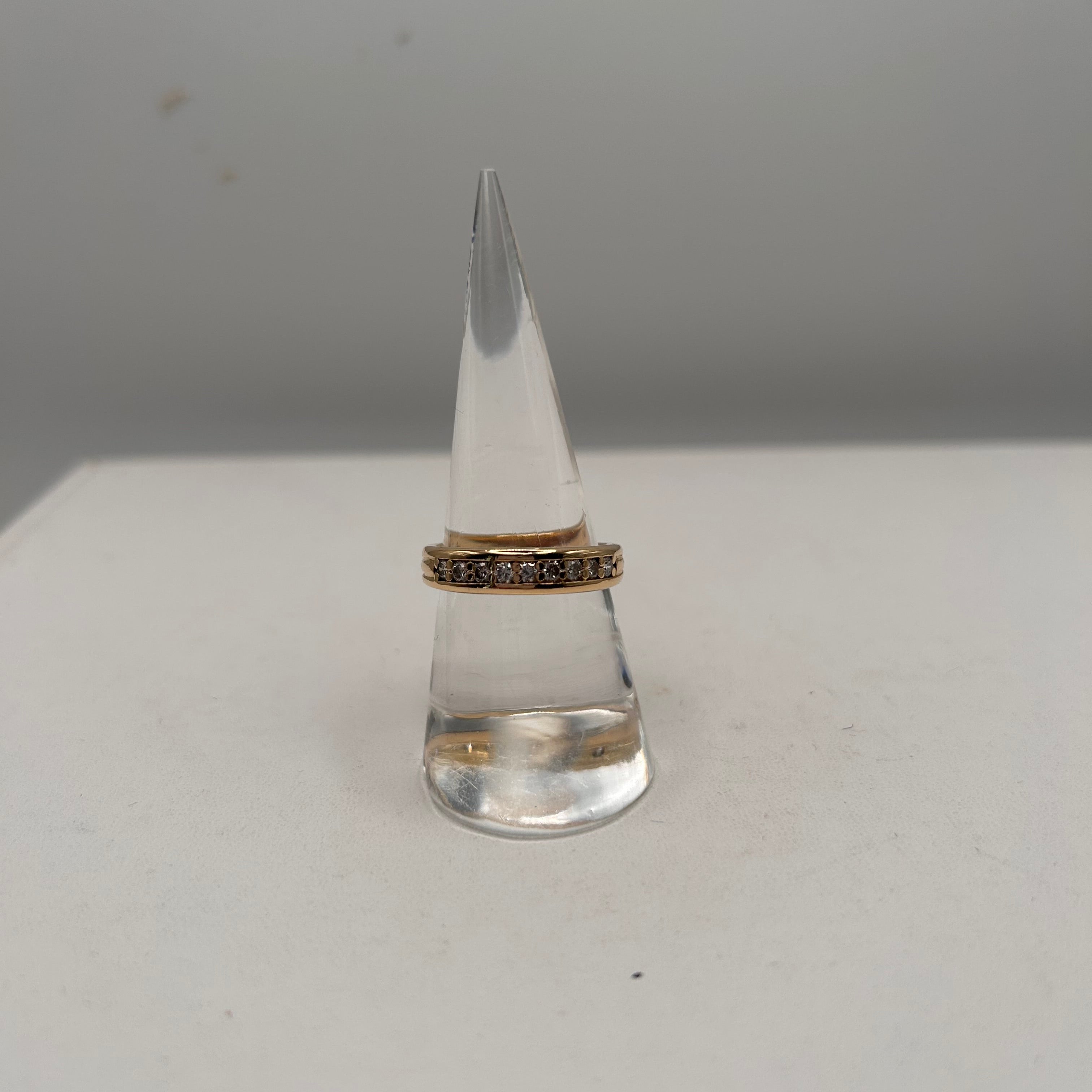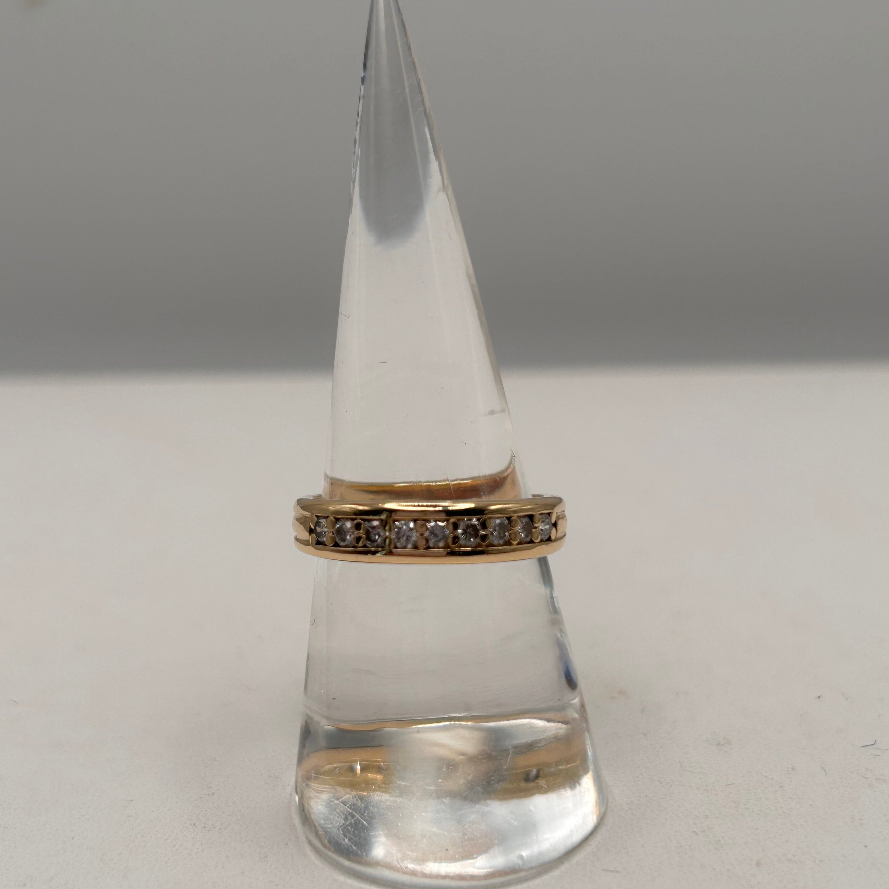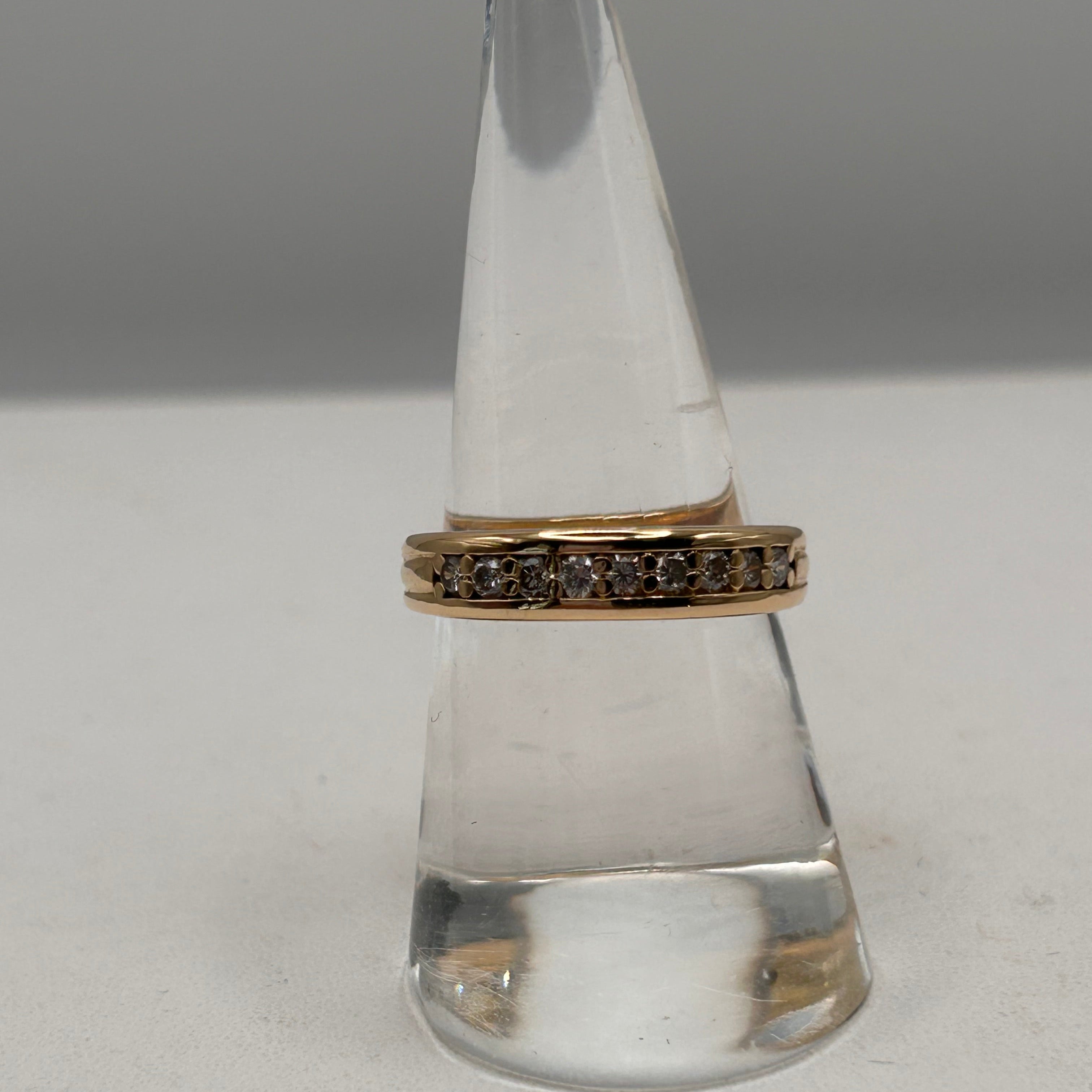 Bague demi-tour en or jaune 18 carats, sertie de 9 diamants brillants pour une touche d’éclat discret et raffiné. Avec son design classique et sa belle brillance, elle se porte aussi bien au quotidien que pour les grandes occasions. En très bon état, c’est un bijou élégant et intemporel.